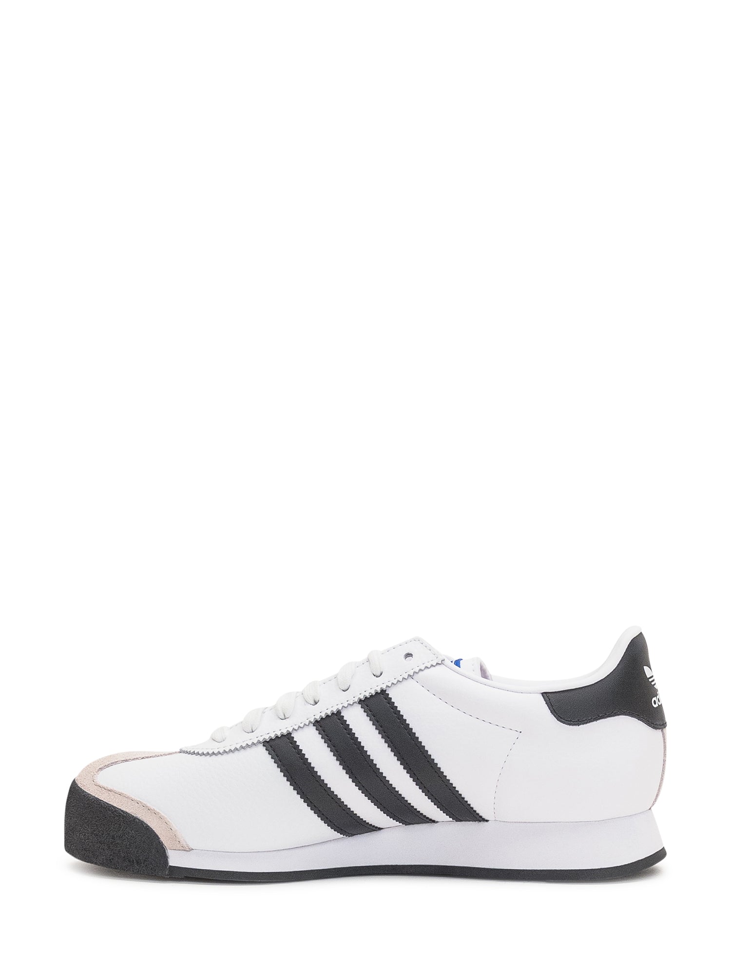 Sneakers Adidas Samoa in pelle bianca con iconiche tre strisce nere, punta rinforzata e suola in gomma.