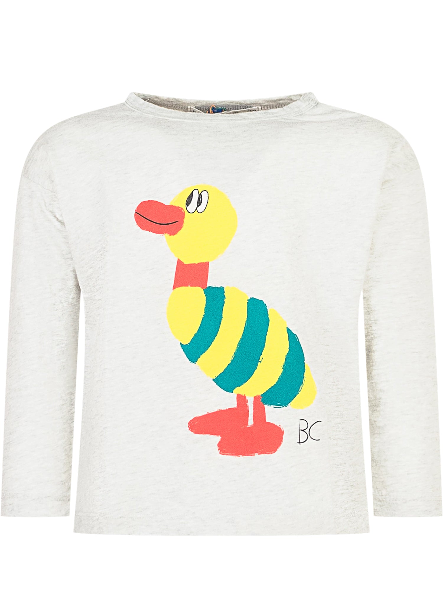Maglietta Bobo Choses in cotone bianco con divertente stampa anatra colorata sul davanti.