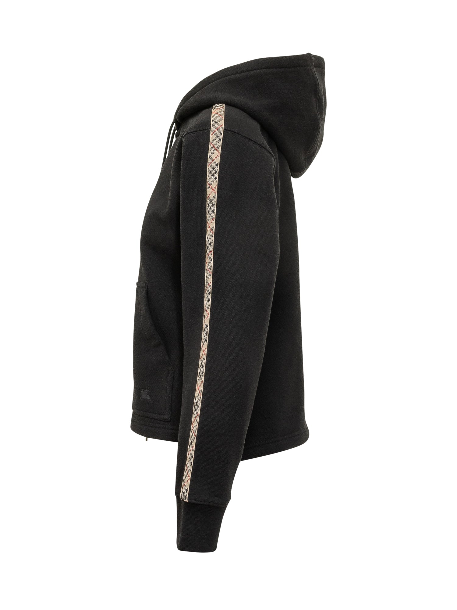 Felpa con cappuccio regolabile con coulisse e chiusura con zip frontale. Tasche a marsupio sul davanti e motivo check lungo le maniche. Polsini e fondo rifiniti, logo ricamato sul davanti.