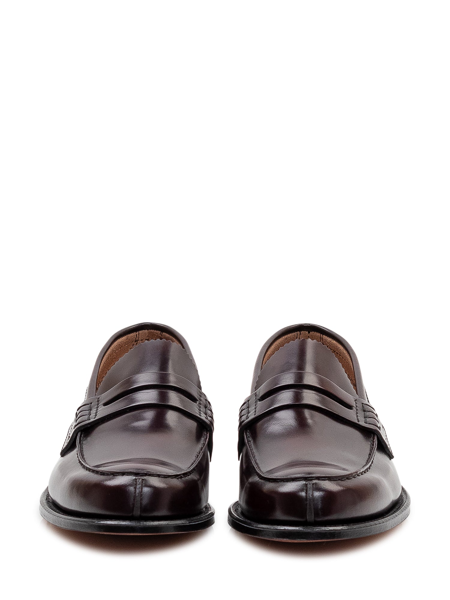 Mocassini penny in pelle spazzolata con finitura lucida e sfumature naturali, caratterizzati da mascherina classica, cuciture a vista e suola bassa. Un modello elegante e senza tempo ideale per occasioni formali e look raffinati.