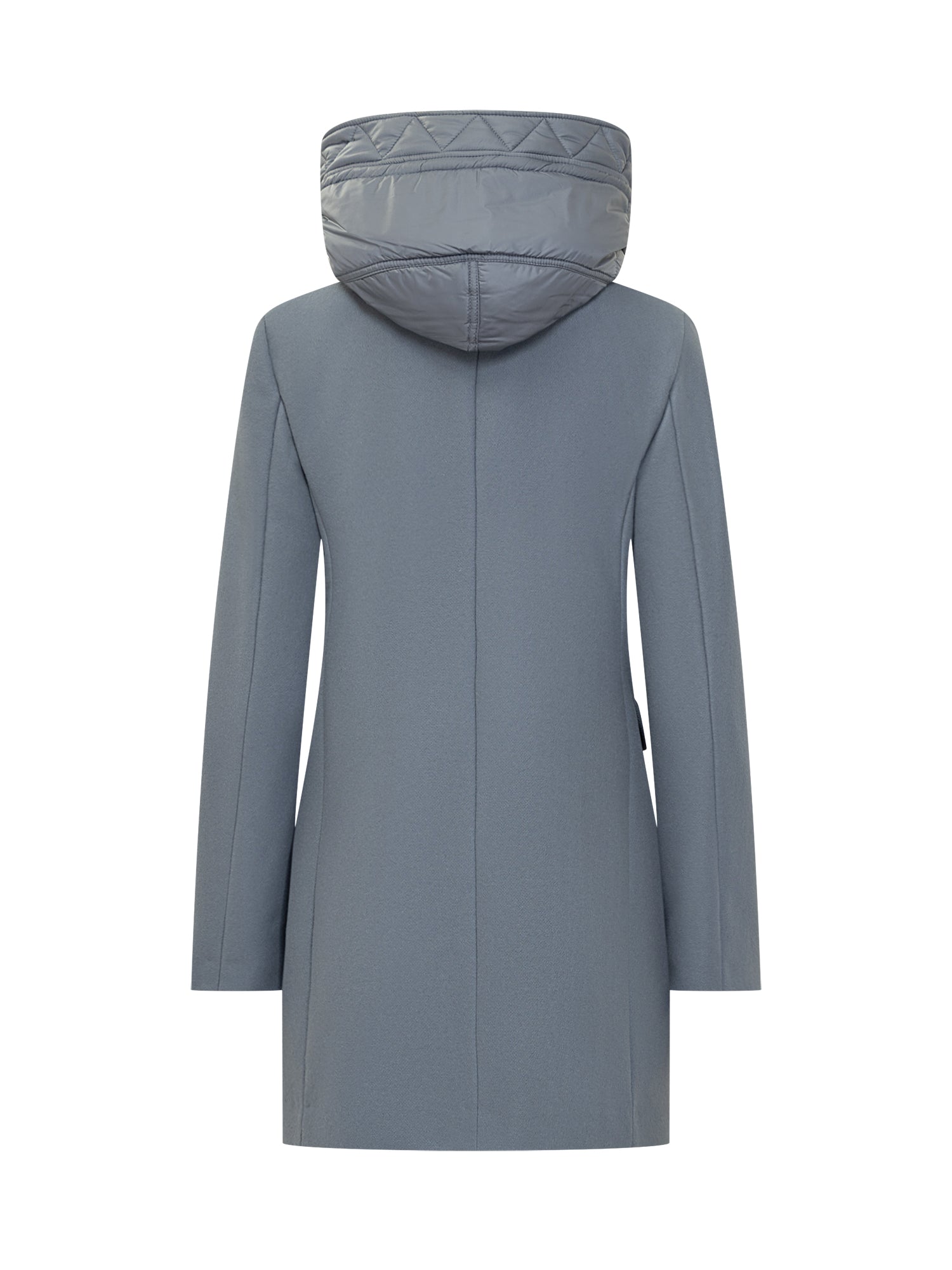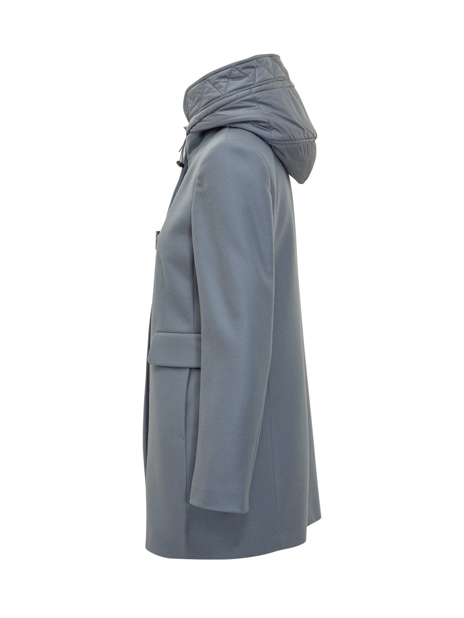 Toggle coat Fay DB in raffinato drap di lana azzurro con cappuccio imbottito in nylon trapuntato removibile.