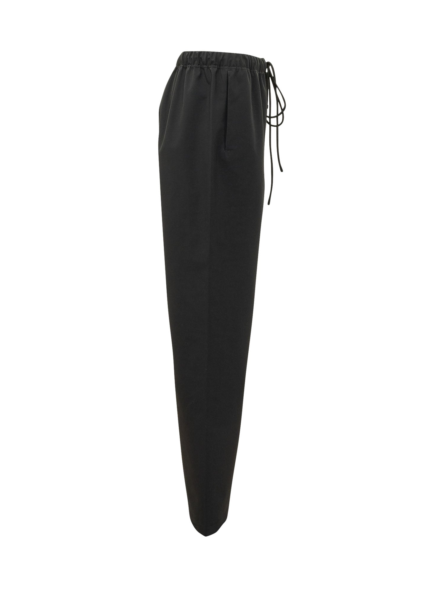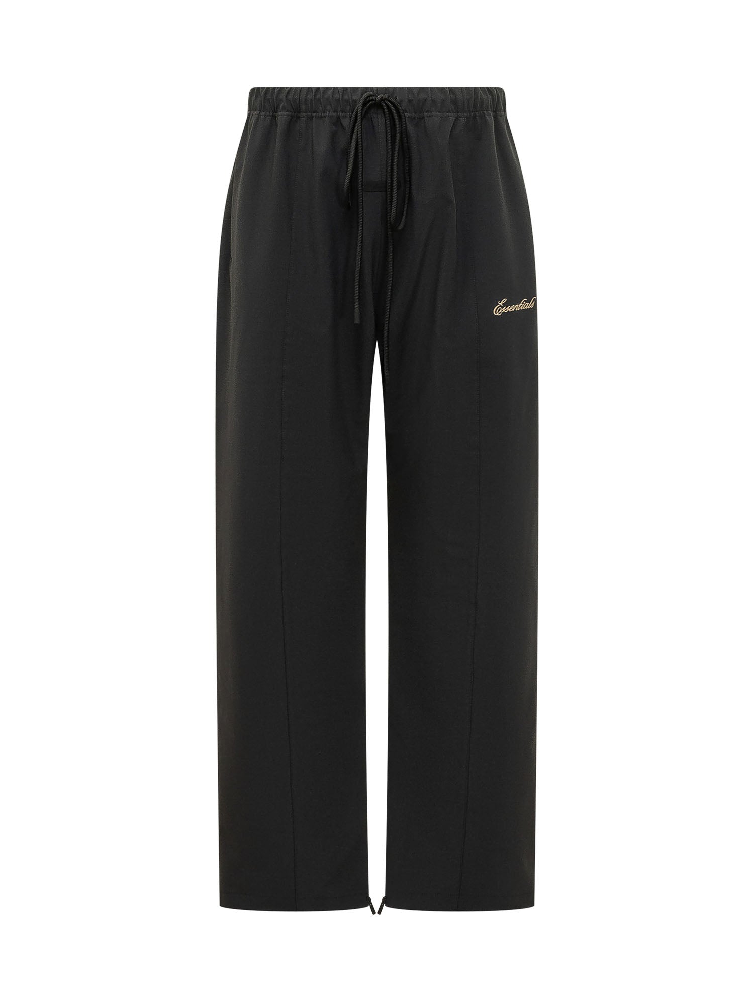 Pantaloni lunghi con vita elasticizzata e coulisse regolabile, logo frontale e fondo con zip