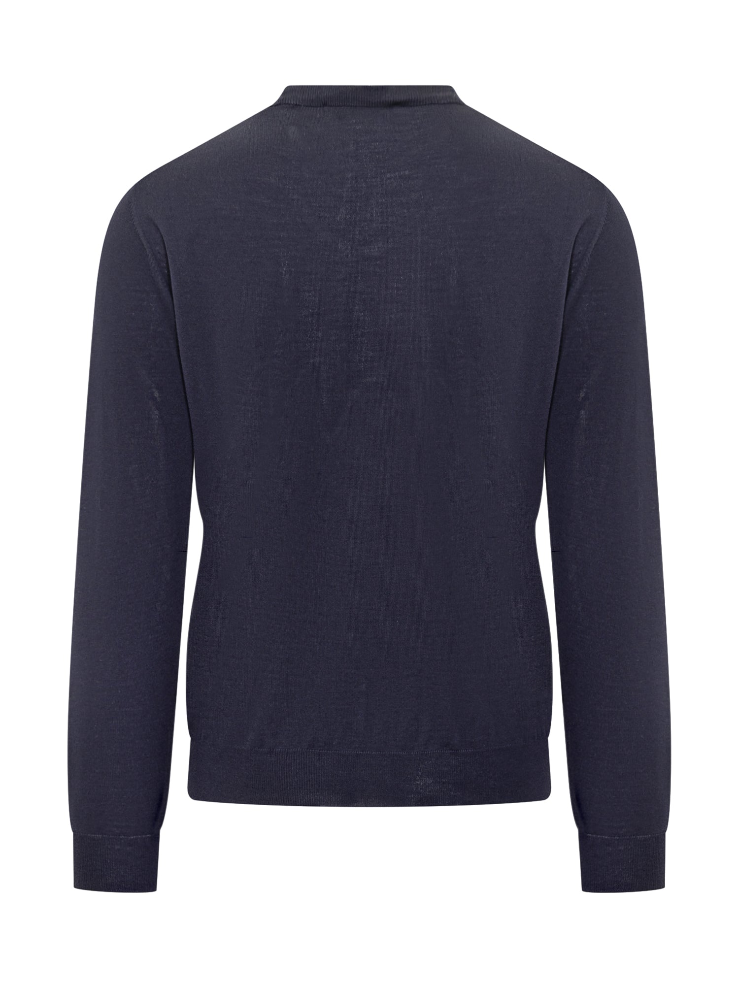 Maglia girocollo Filippo De Laurentiis in filato fine blu navy.