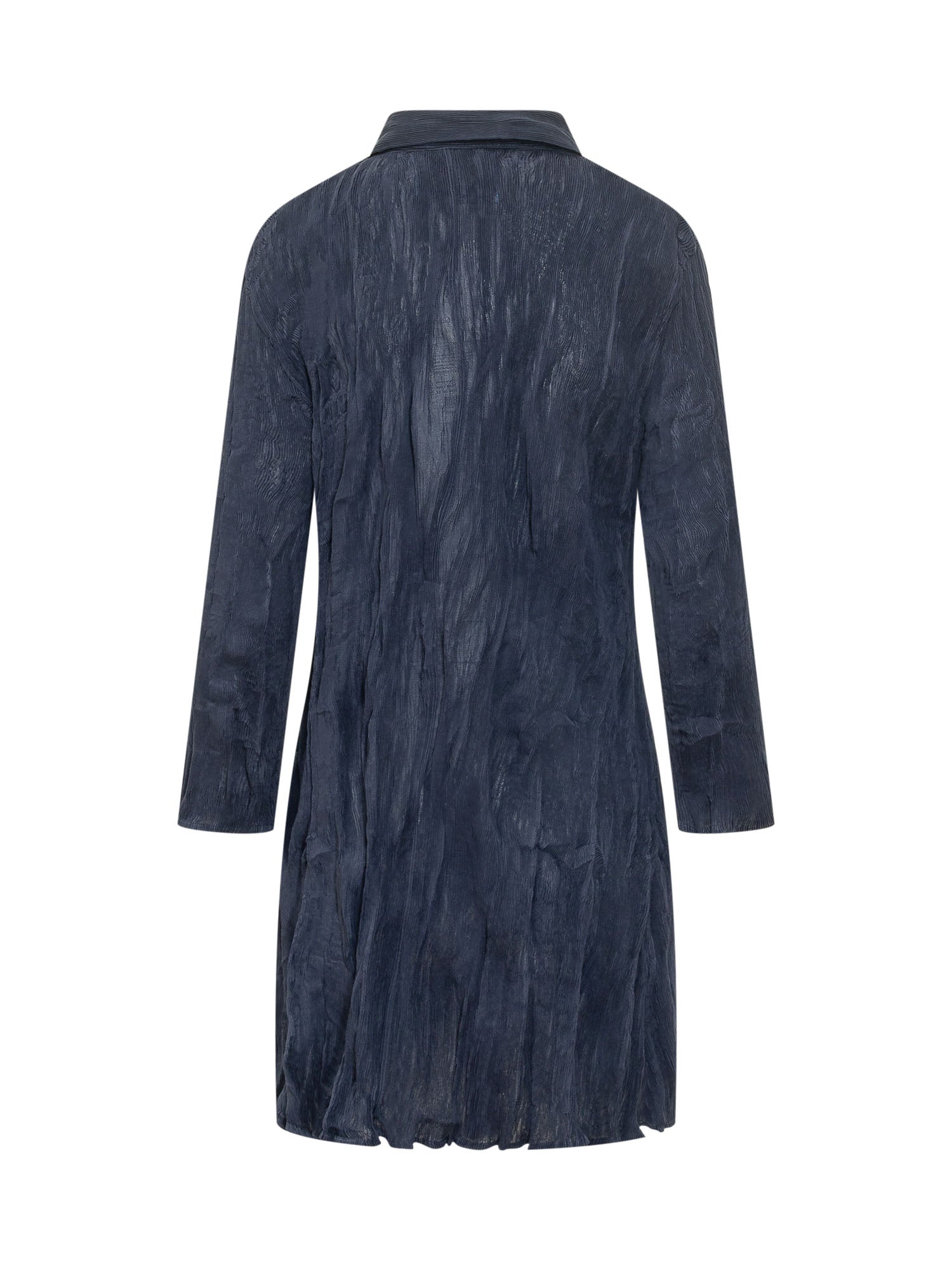 Abito con colletto classico, maniche lunghe e chiusura frontale con bottoni, struttura plissettata