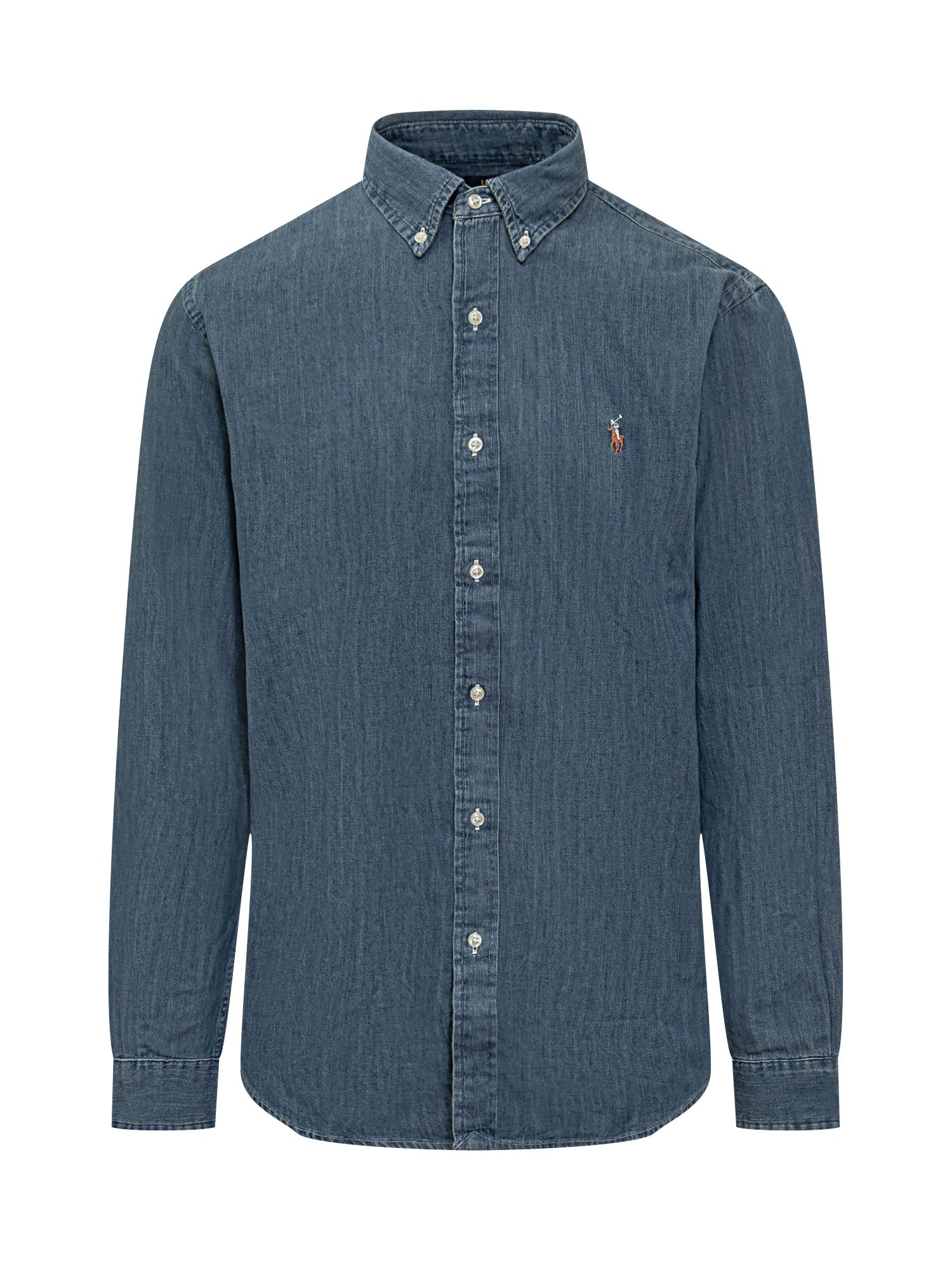 Camicia sportiva a maniche lunghe realizzata in denim di cotone, caratterizzata da colletto button-down, chiusura frontale con bottoni e logo ricamato sul petto. Il design classico e il tessuto resistente la rendono ideale per un look casual curato.