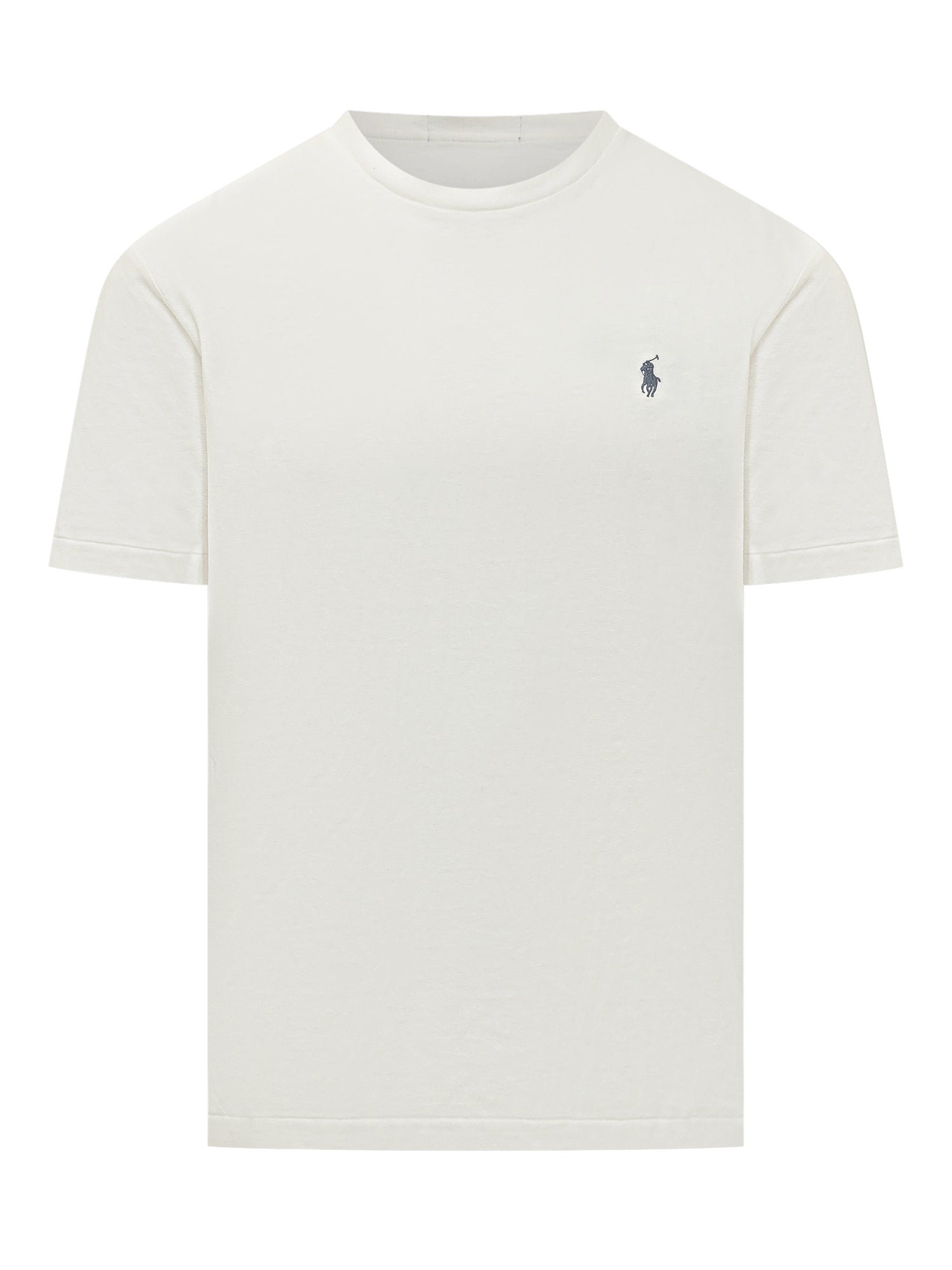 T-shirt in maglia a maniche corte con girocollo e logo ricamato a contrasto sul petto. Linea regolare con lavorazione uniforme e finiture curate. Pensata per look casual dal carattere attuale.