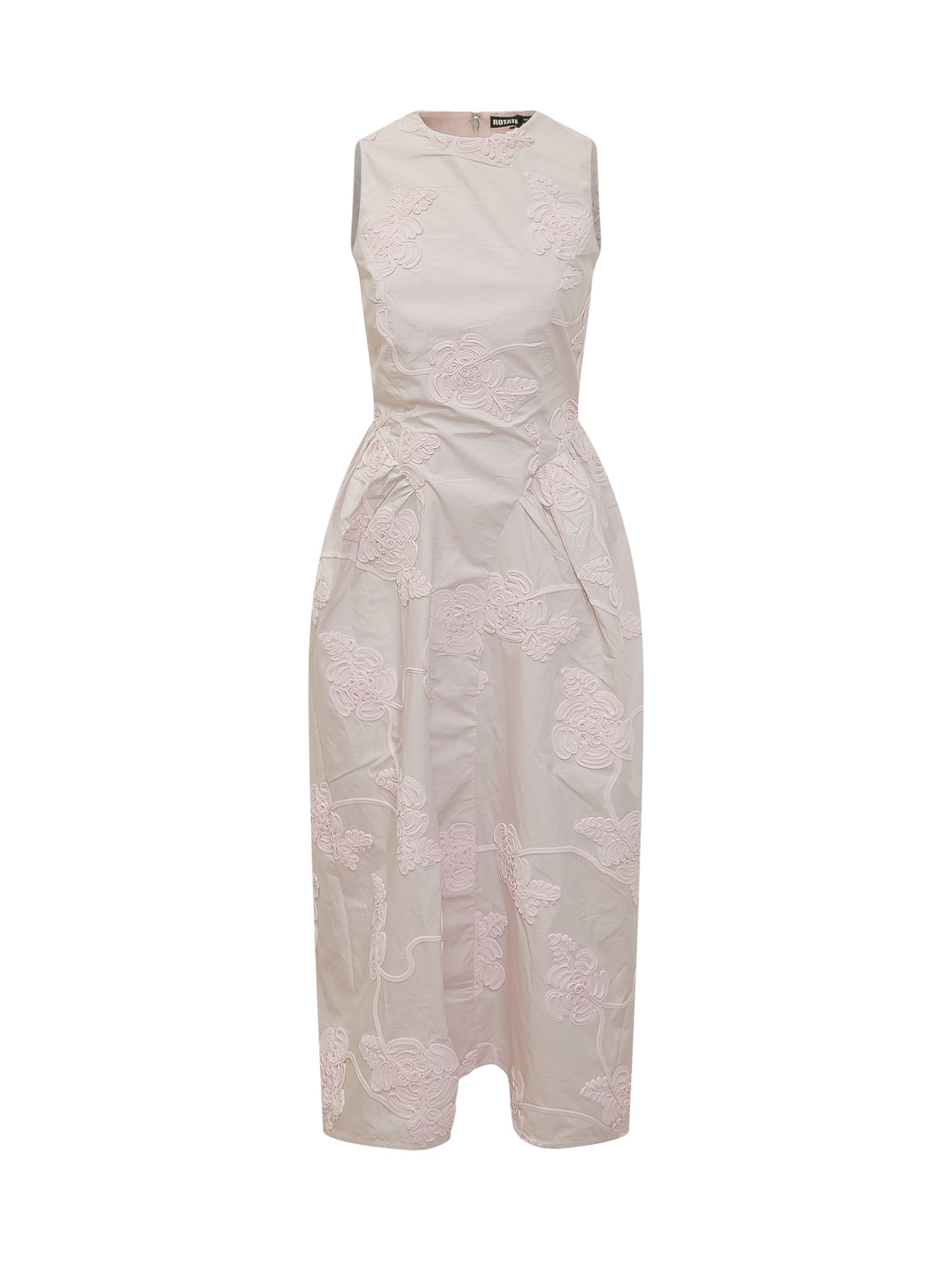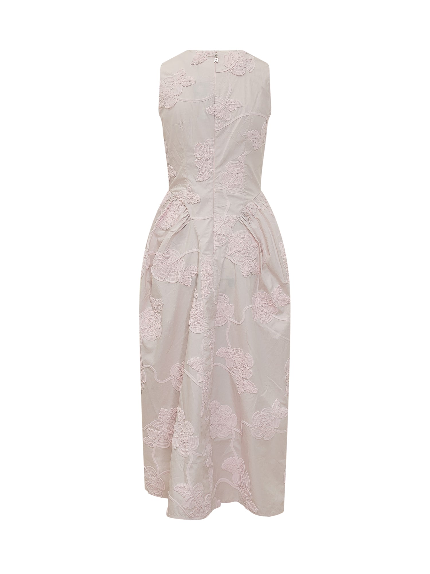 Abito midi senza maniche con lavorazione floreale a rilievo e scollo rotondo.