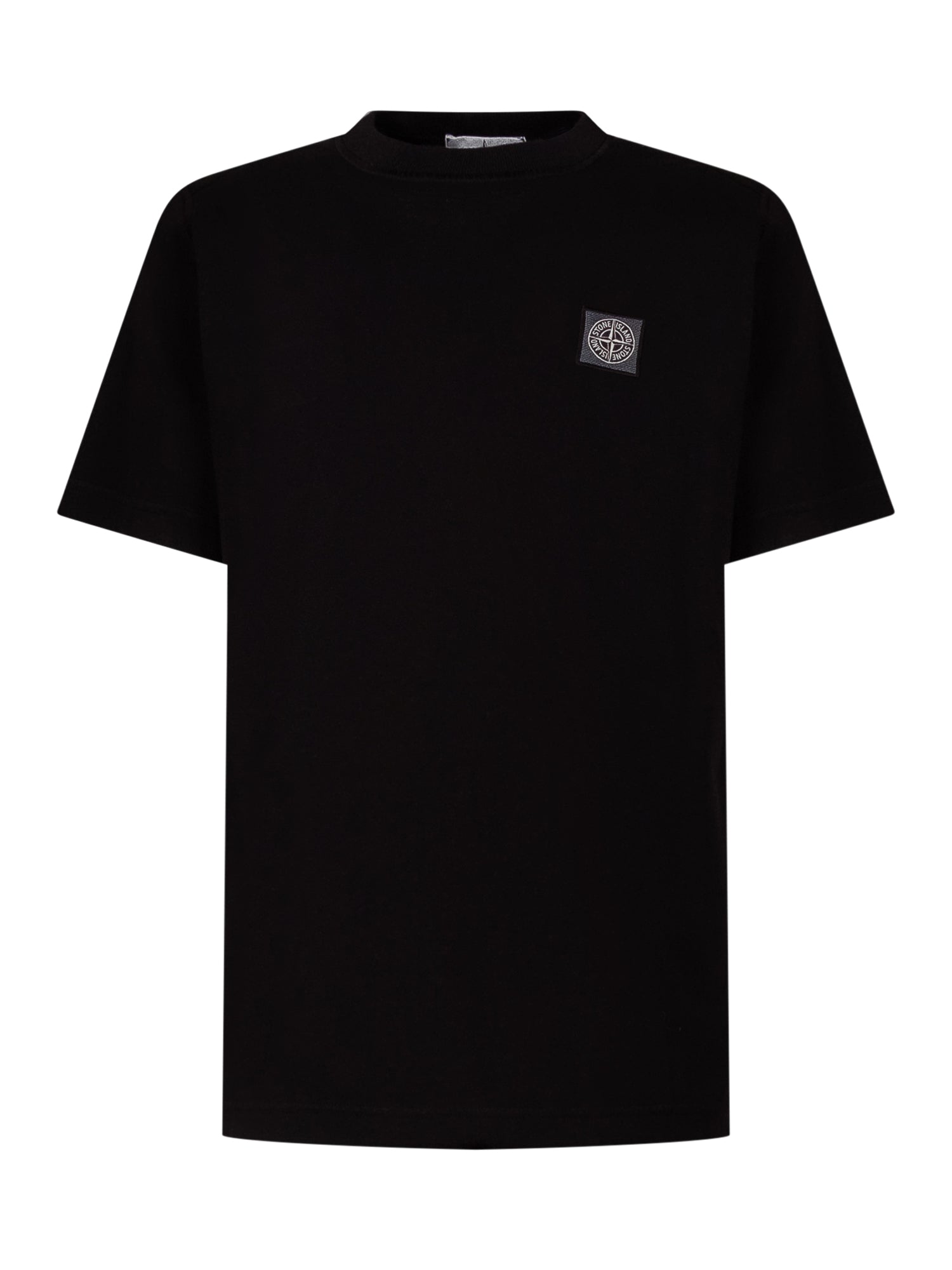 T-shirt a maniche corte in cotone con girocollo e patch logo applicata sul petto. Linea essenziale e vestibilità regolare, perfetta per look casual e versatili.