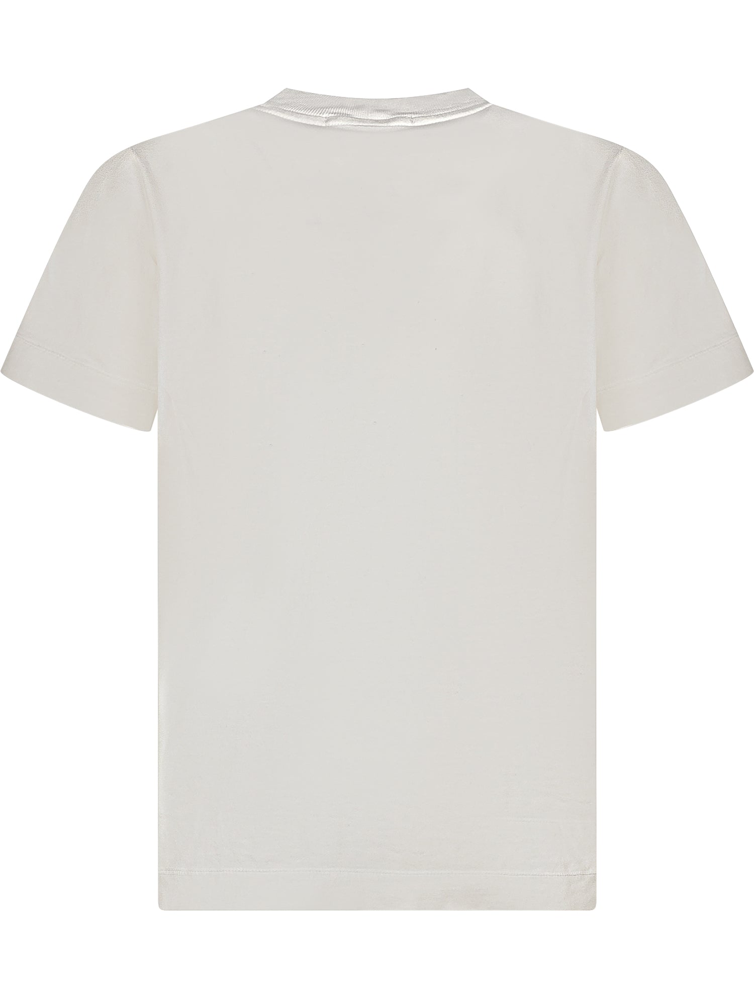 T-shirt Stone Island bianca a maniche corte in cotone con girocollo e iconico patch logo sul petto.