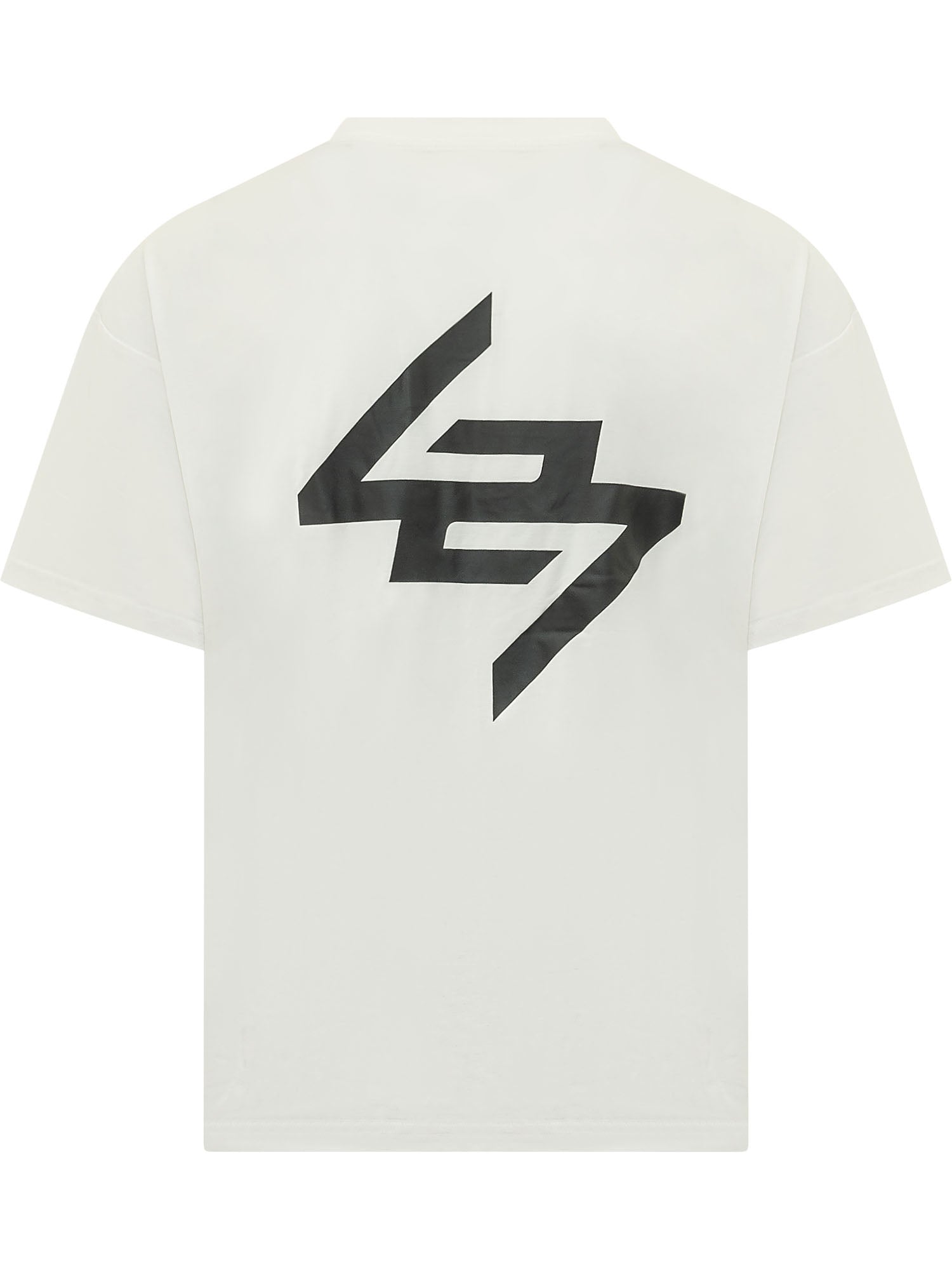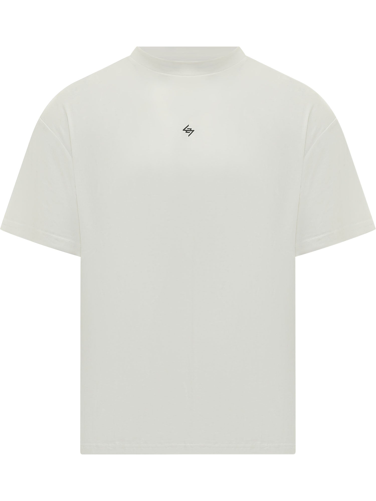 T-shirt a maniche corte con girocollo, logo grafico centrale, struttura pulita e linea dritta, adatta per uso quotidiano.