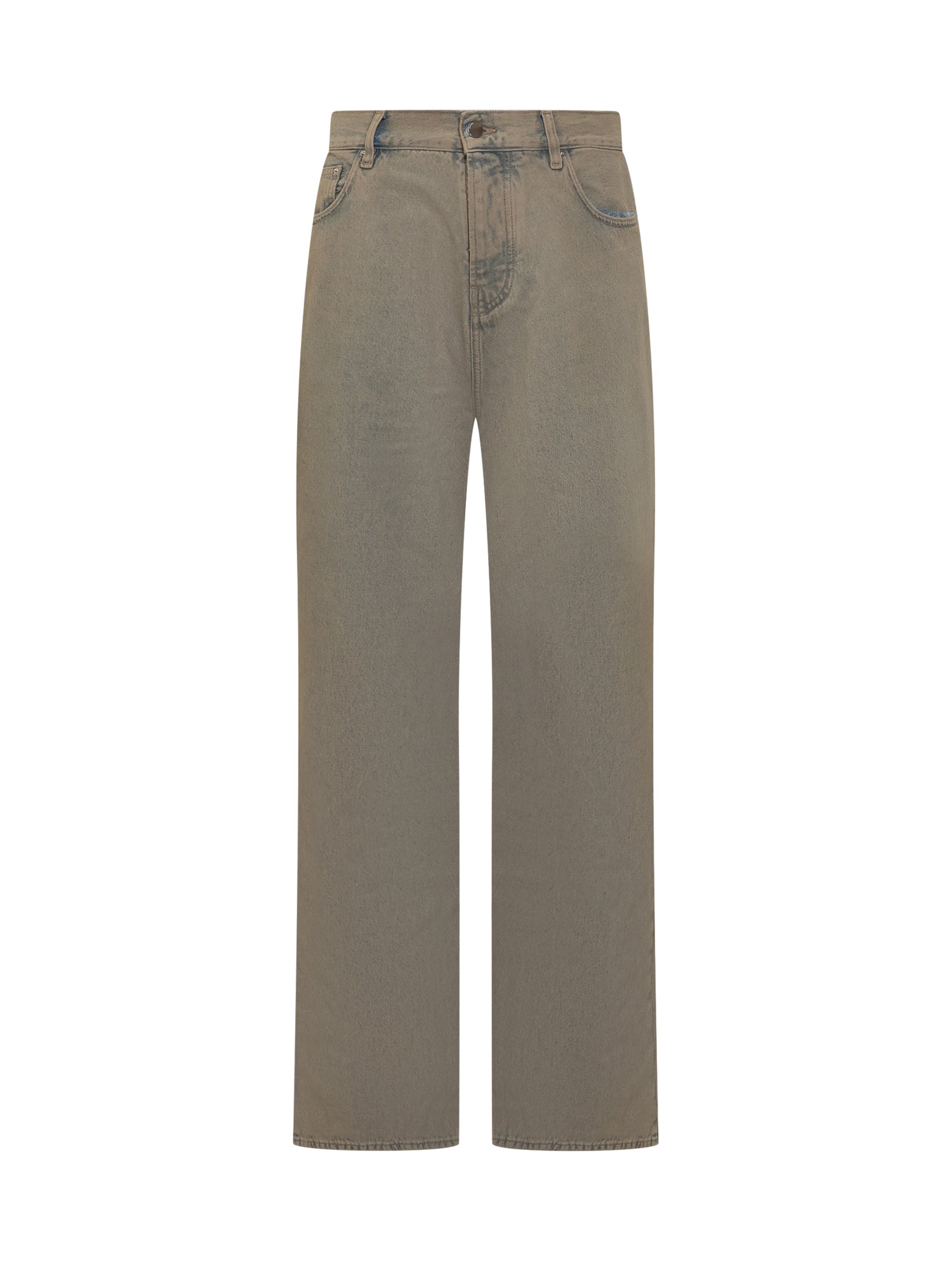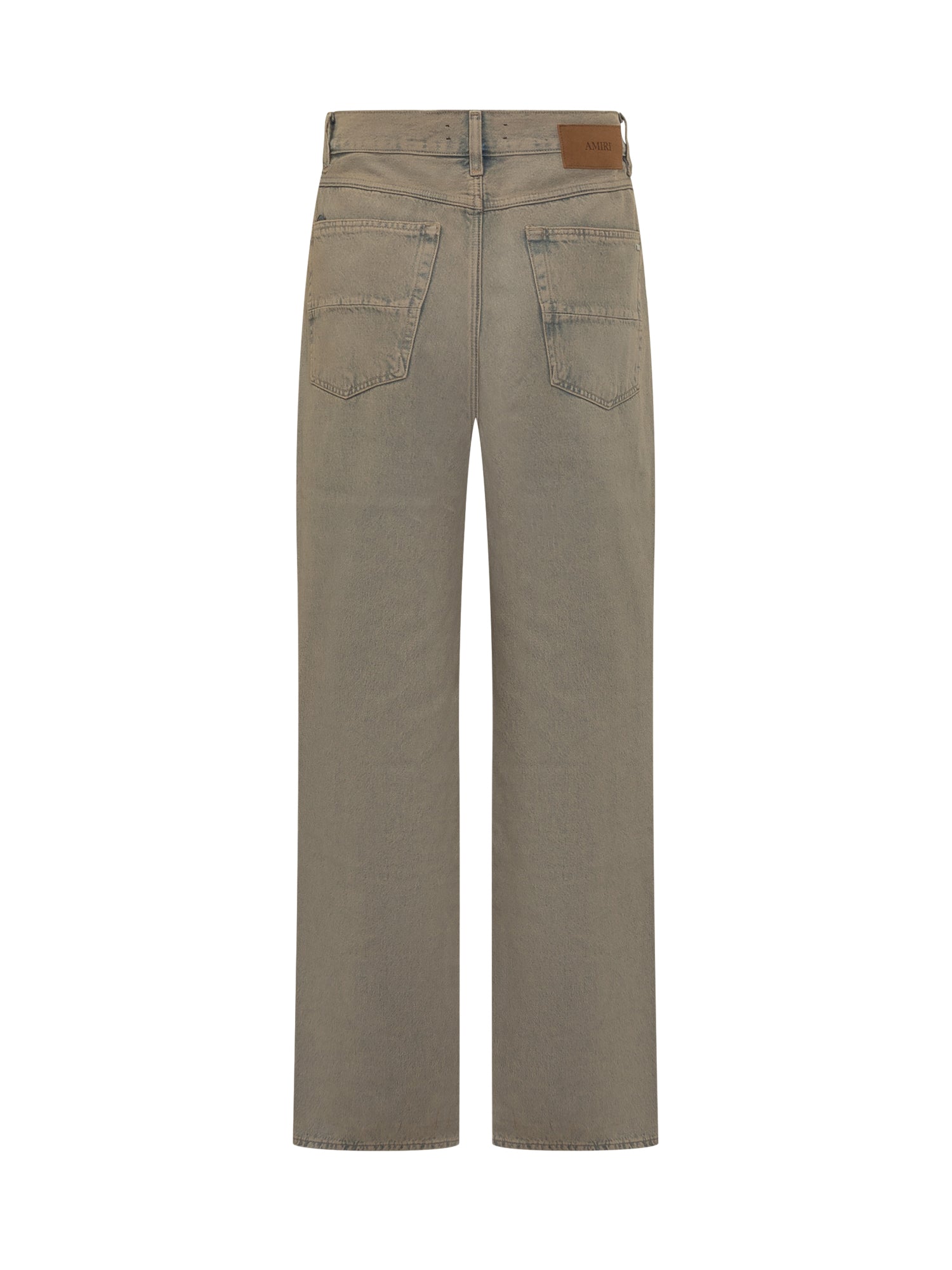 Jeans Amiri in denim grigio con lavaggio effetto vintage e gamba ampia.