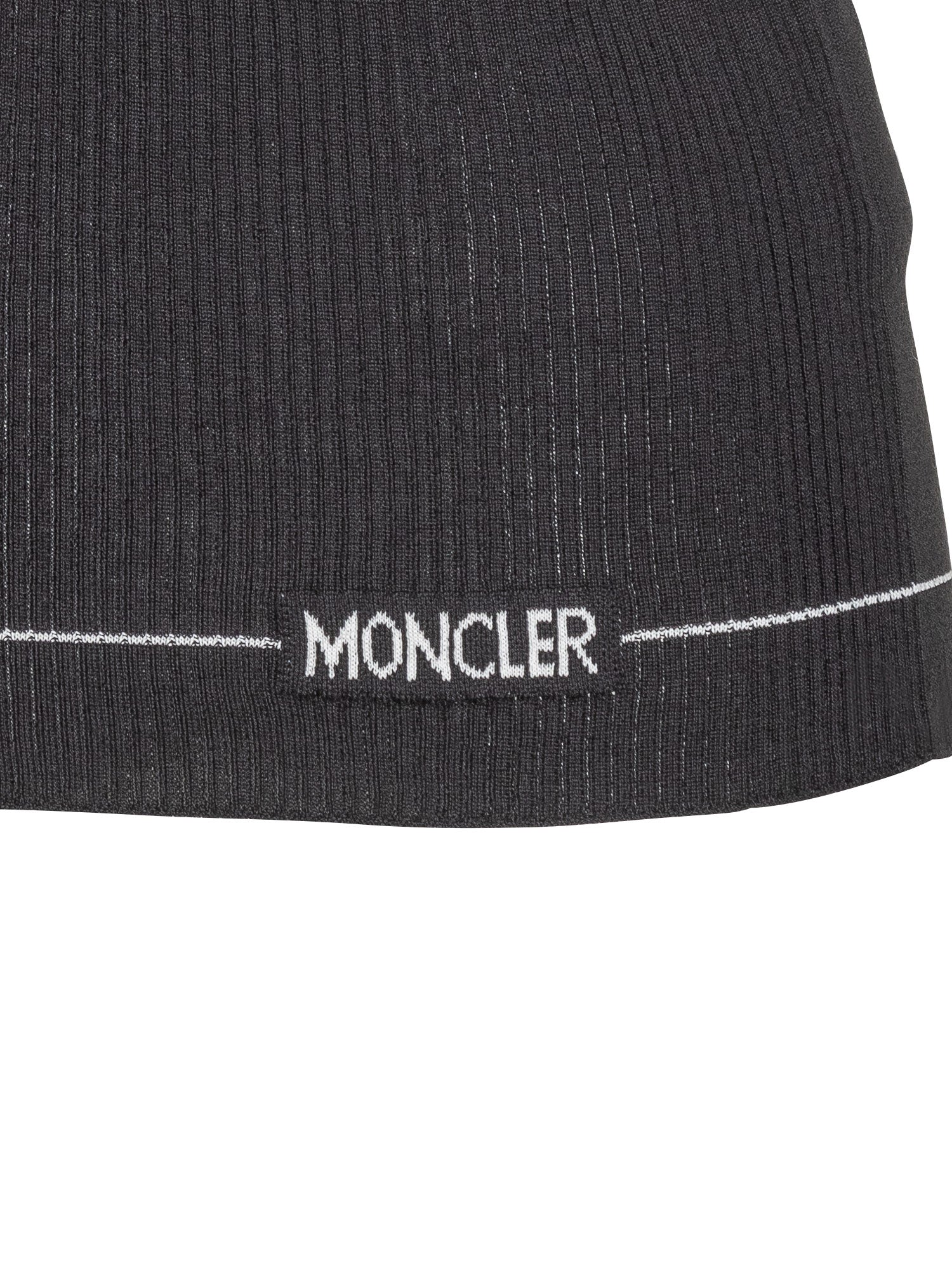 Maglia dolcevita nera a coste in tessuto tecnico elasticizzato. Fit aderente, logo Moncler sul fondo e dettaglio a contrasto.