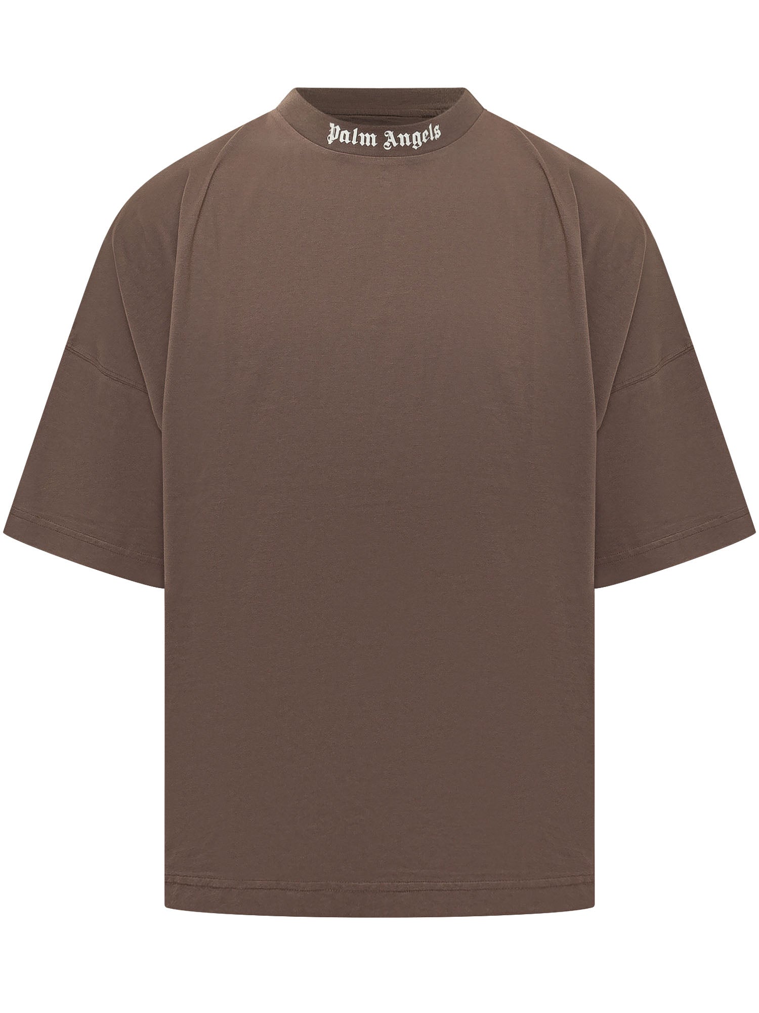 T-shirt a maniche corte con girocollo e logo posizionato sul colletto, design pulito e lineare.