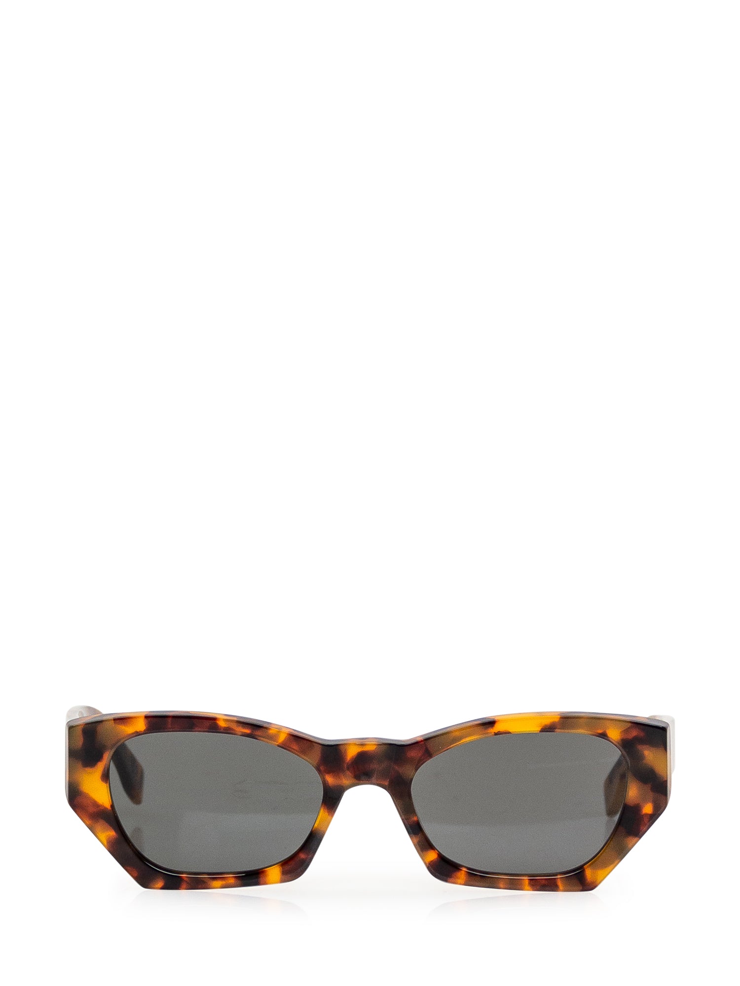 Occhiali da sole maculati. Lenti grigie. Montatura rettangolare cutting-edge. Logo sulle aste.