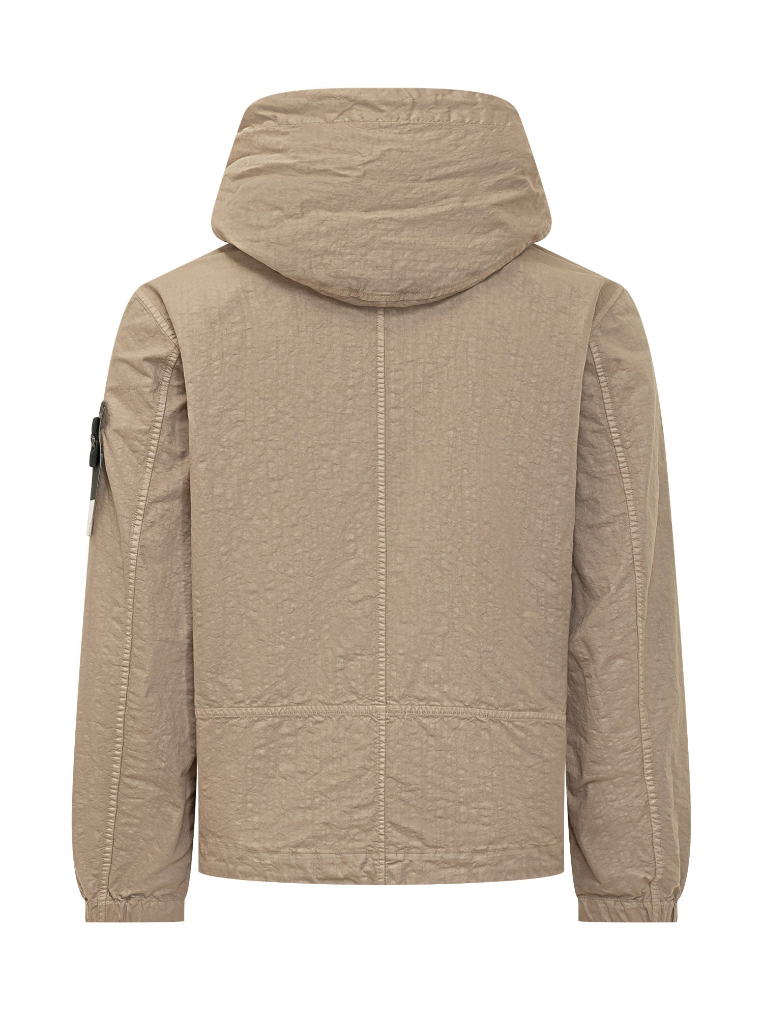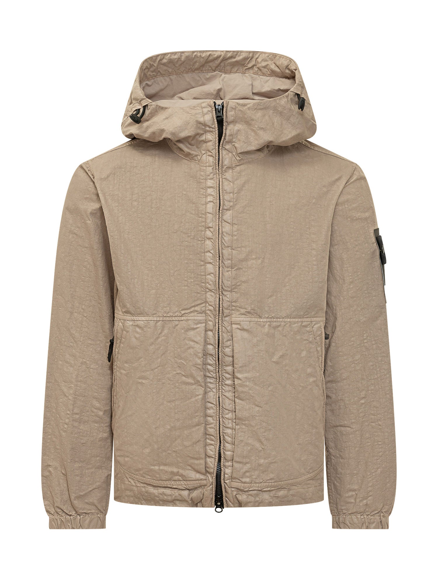 Giacca con cappuccio regolabile e chiusura con zip. Tasche laterali e tasca applicata sulla manica. Linea funzionale e contemporanea.