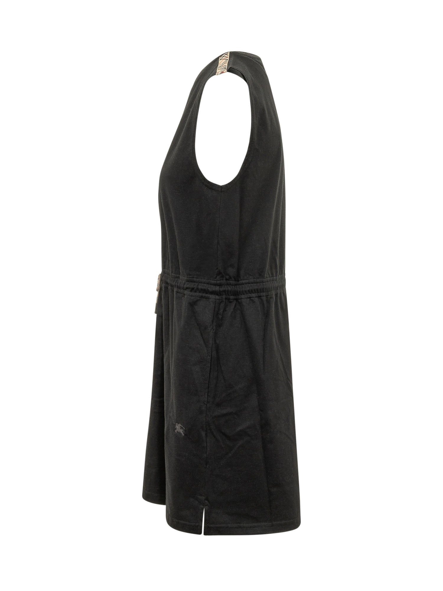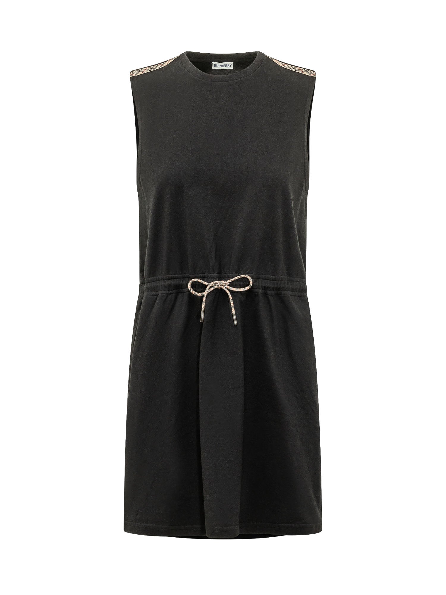 Abito senza maniche con girocollo e coulisse regolabile in vita, linea morbida e design essenziale con dettagli a contrasto sulle spalle