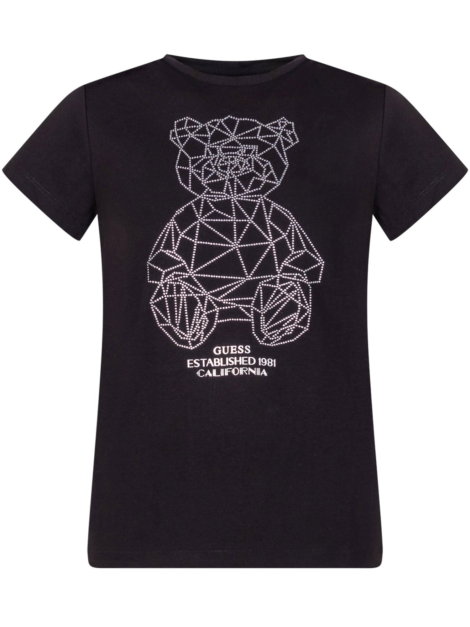 Girocollo a maniche corte con stampa frontale a orso in motivo geometrico e scritte, design moderno e distintivo