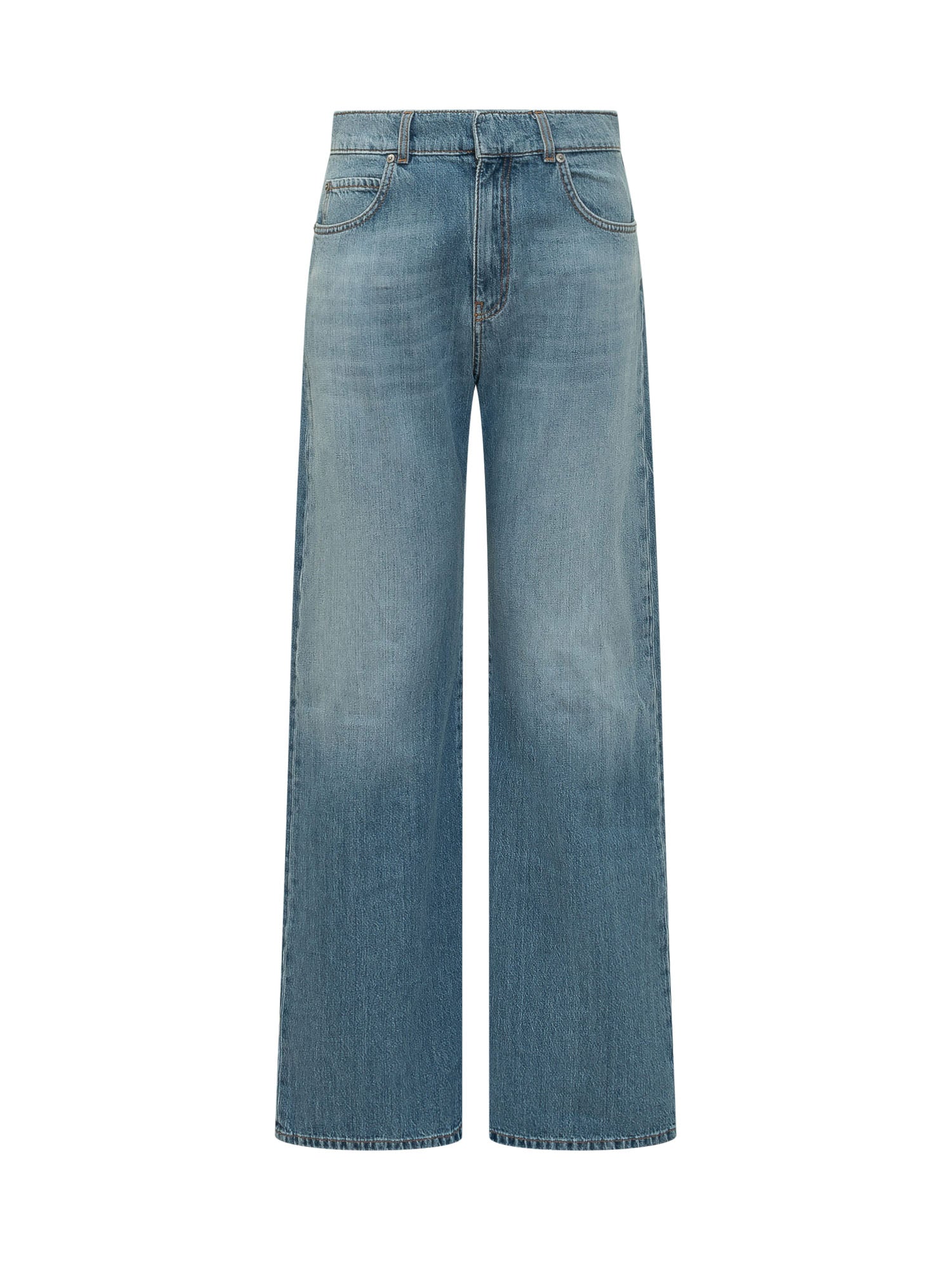Jeans con chiusura frontale e passanti, tasche laterali e linea a gamba ampia