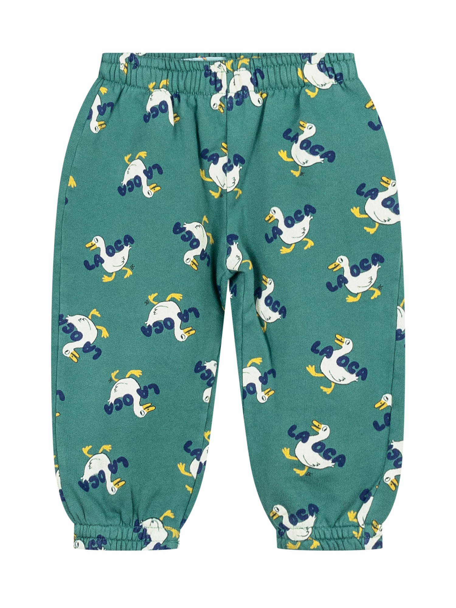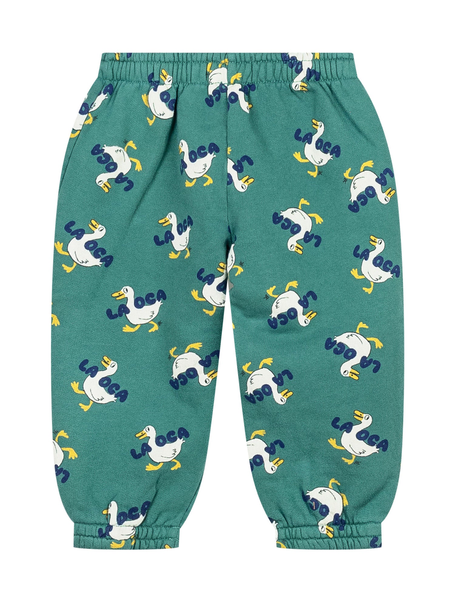 Pantaloni Bobo Choses in cotone verde con divertente stampa all-over di oche.