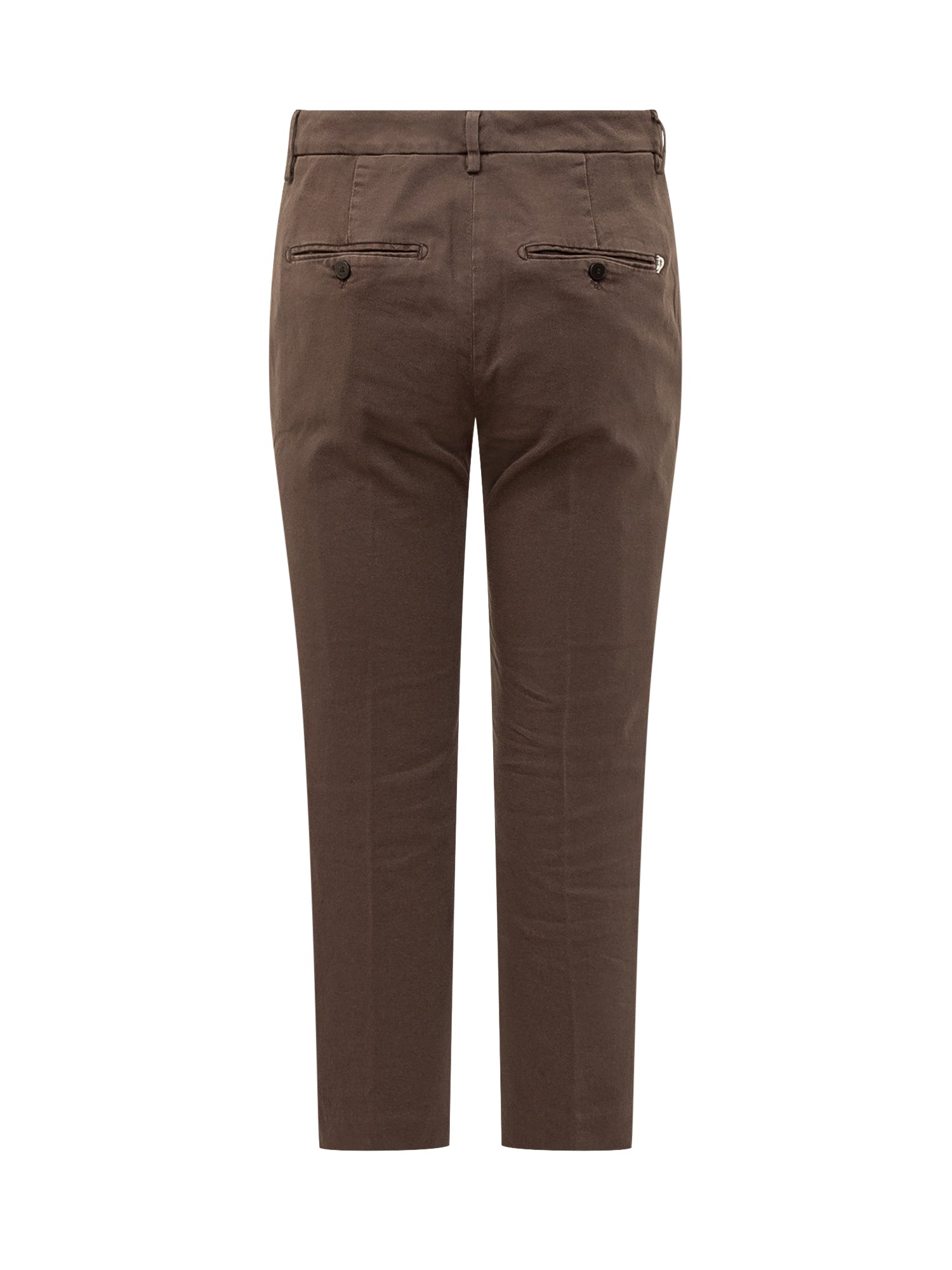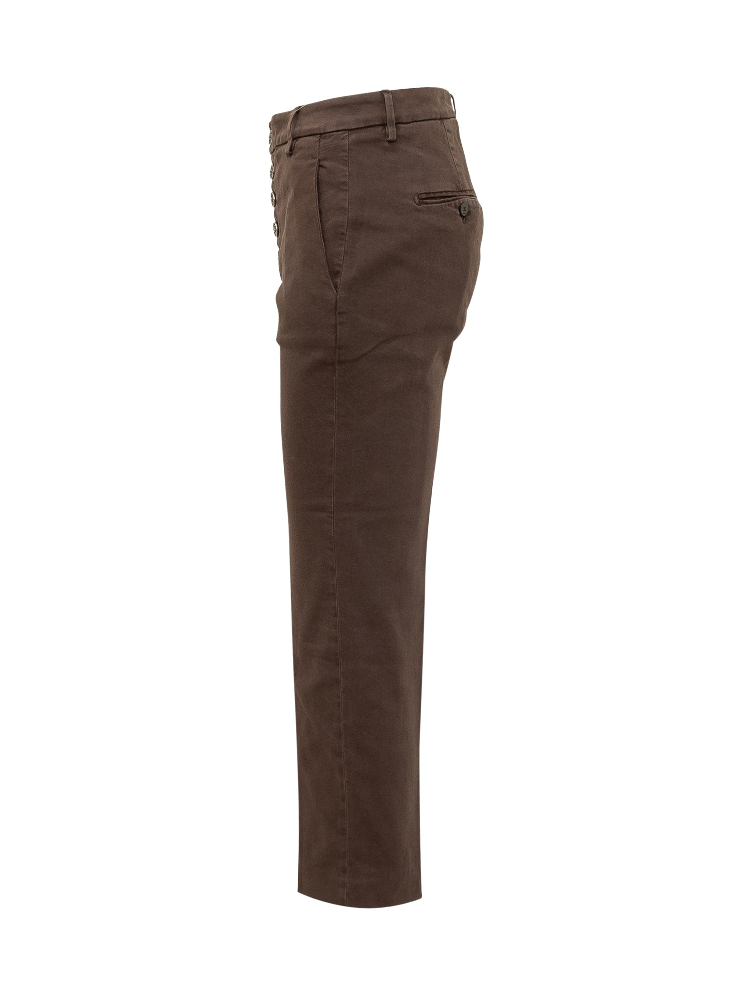 Pantalone Dondup in cotone stretch, taglio cropped e vita media. Chiusura frontale con bottoni decorativi.