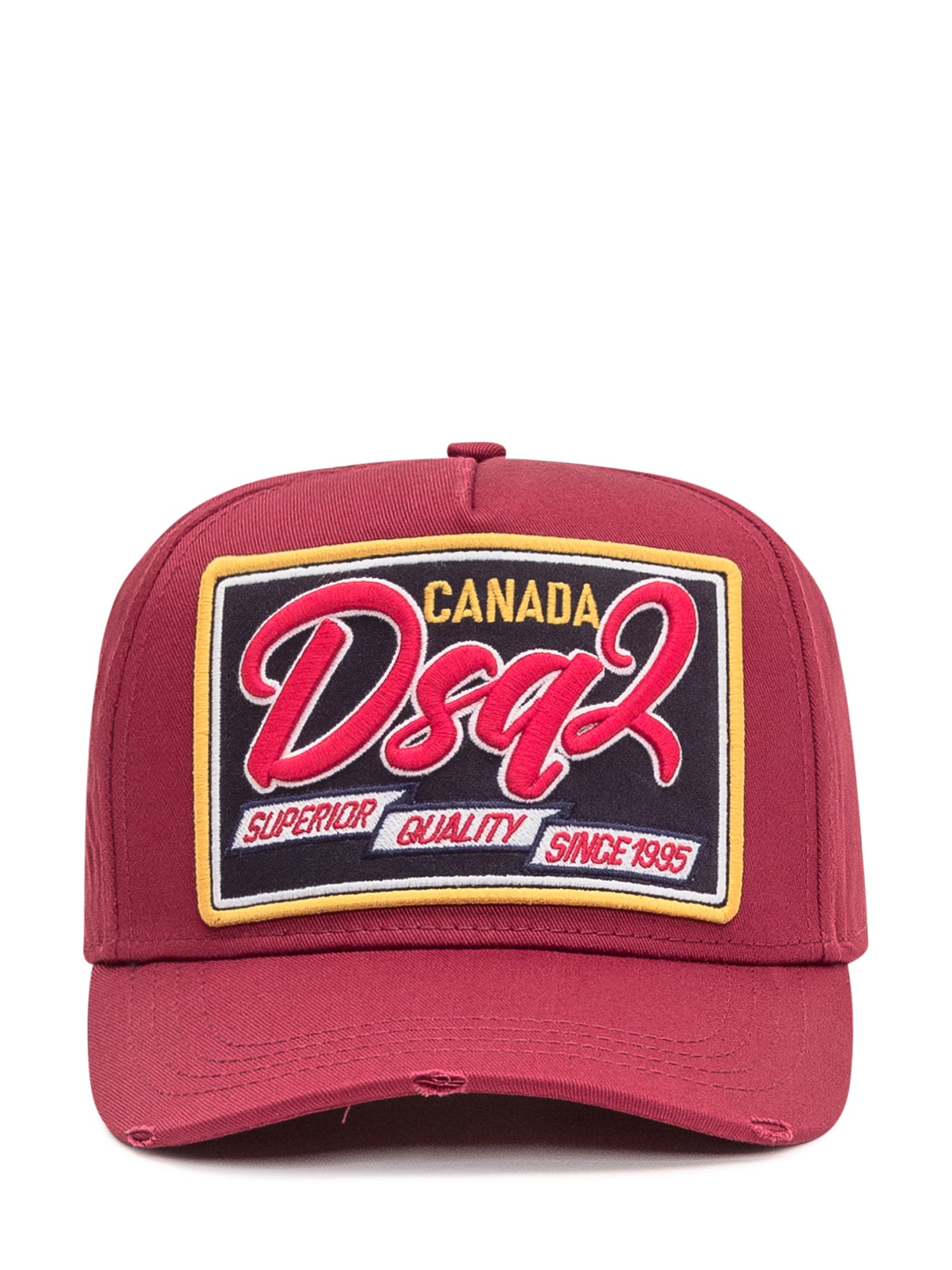 Cappellino rosso Dsquared2 con patch frontale ricamata. Chiusura regolabile sul retro.