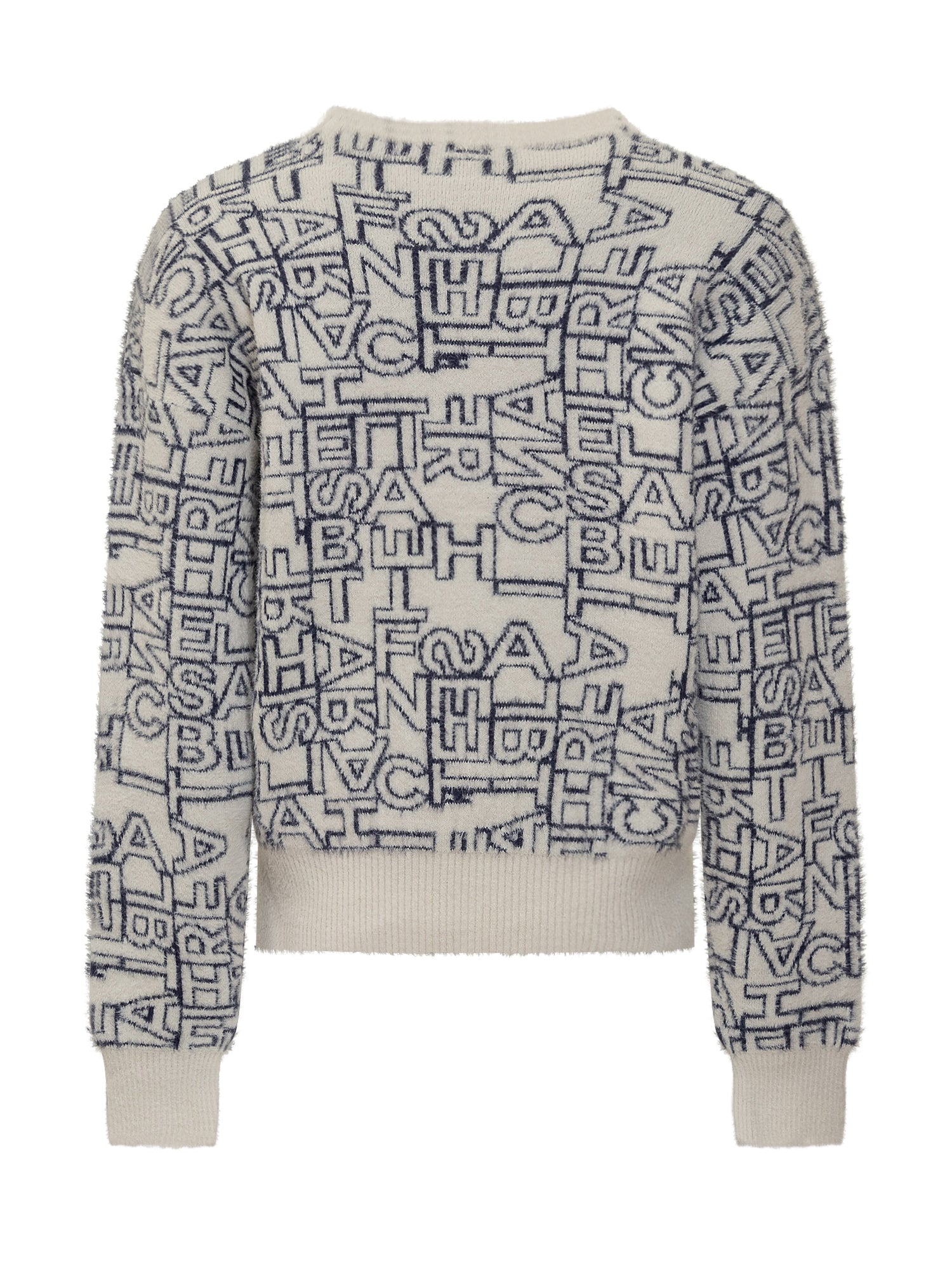 Maglia girocollo. Orli a costine. Logo in jacquard all-over.