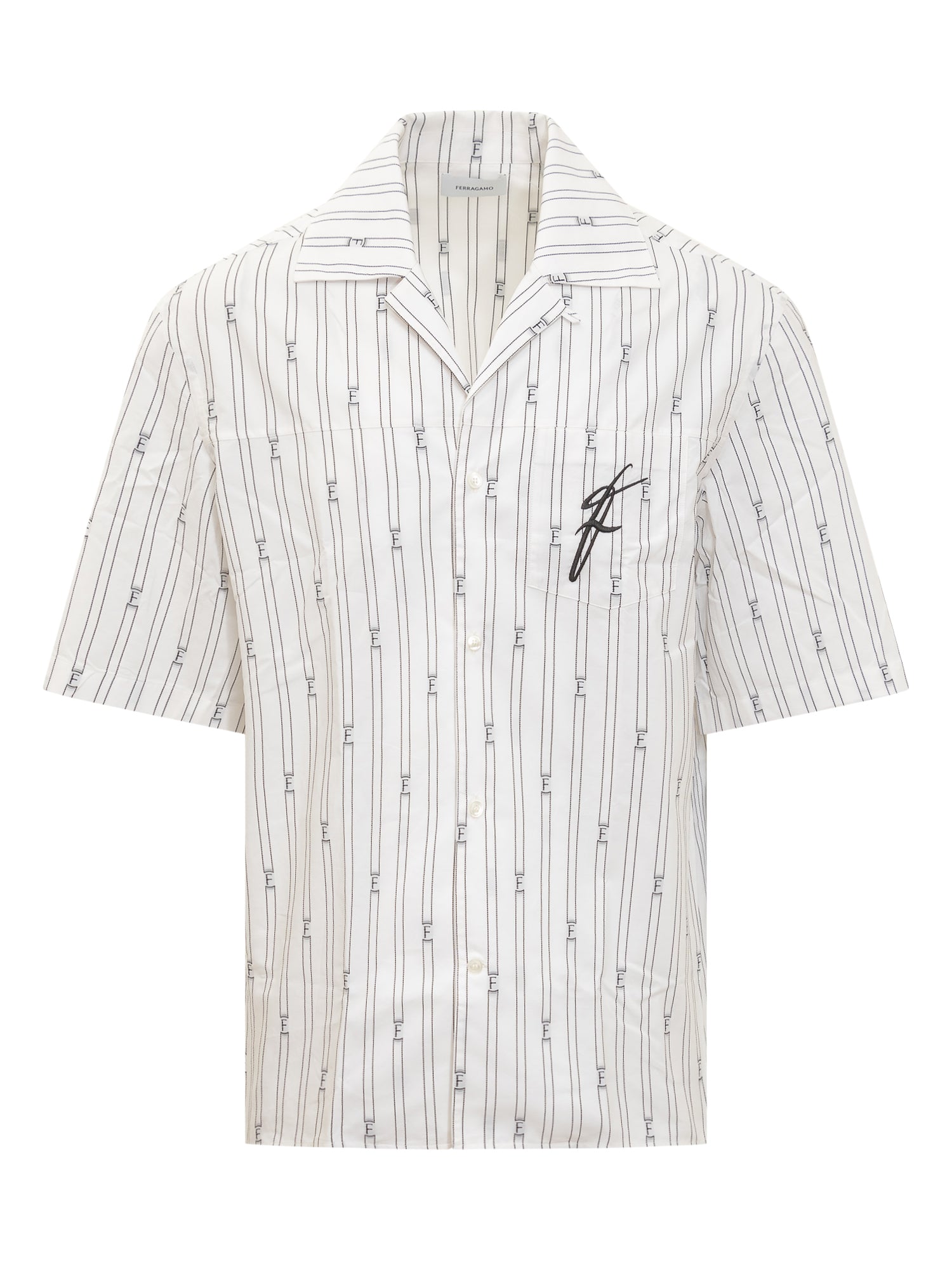 Camicia a maniche corte. Colletto classico. Chiusura con bottoni. Una tasca. Motivo F Icon all-over. Maxi F ricamata sulla tasca.