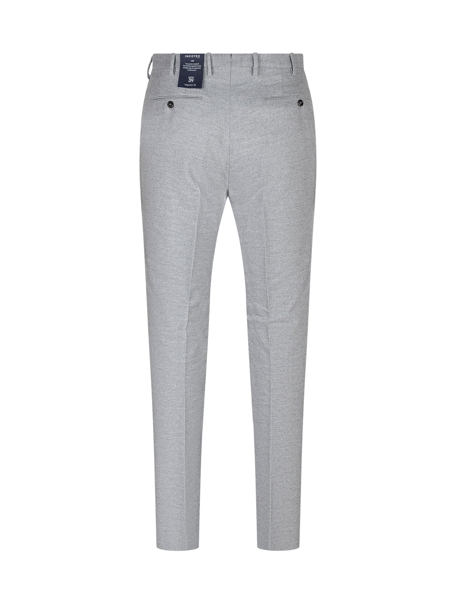 Pantalone straight fit. Chiusura con bottoni e zip. Passanti per cintura. Quattro tasche.