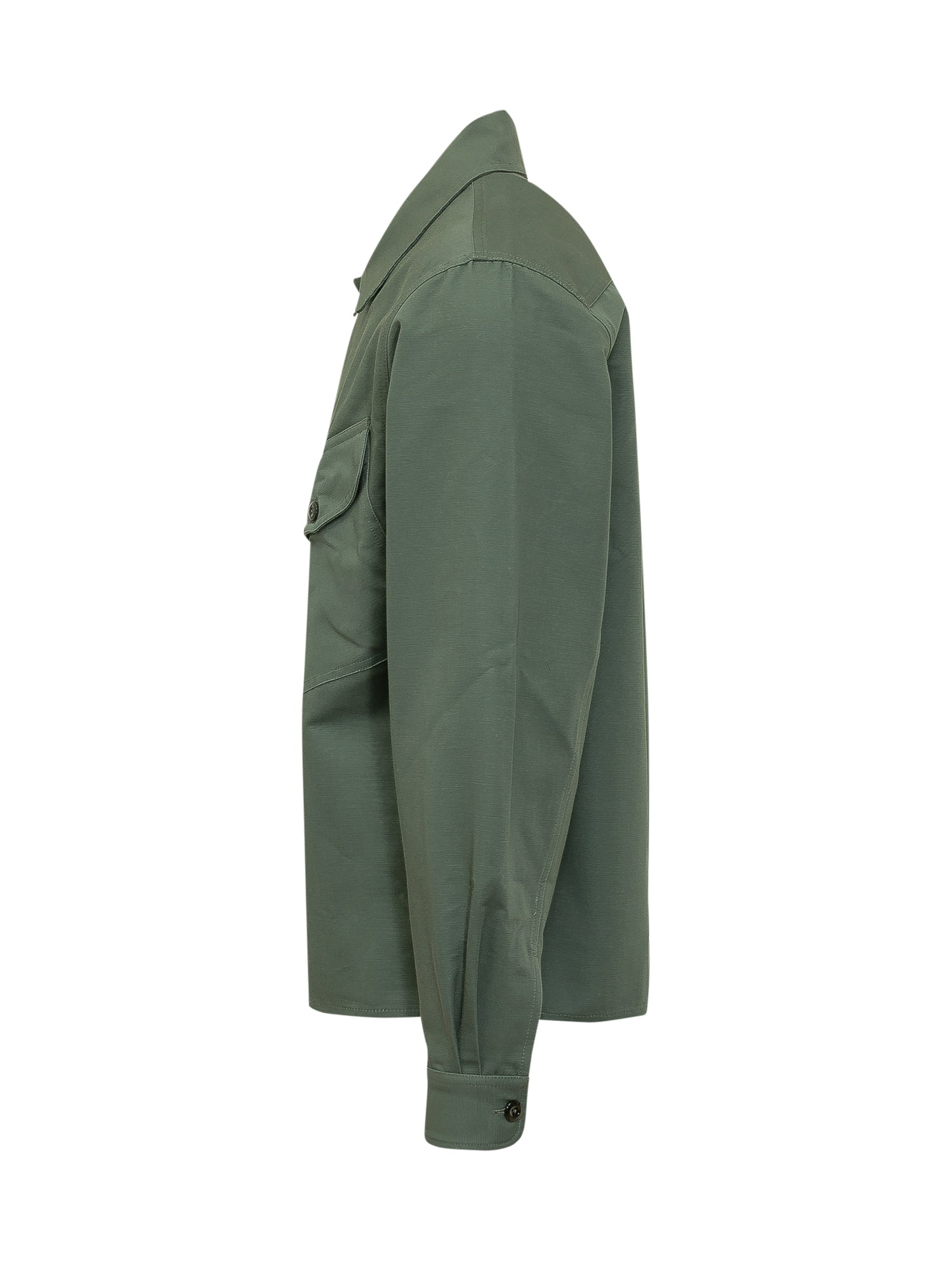 Camicia in cotone dalla linea pulita e funzionale, con colletto classico e tasche applicate con patta sul petto. Modello a maniche lunghe con chiusura frontale con bottoni.