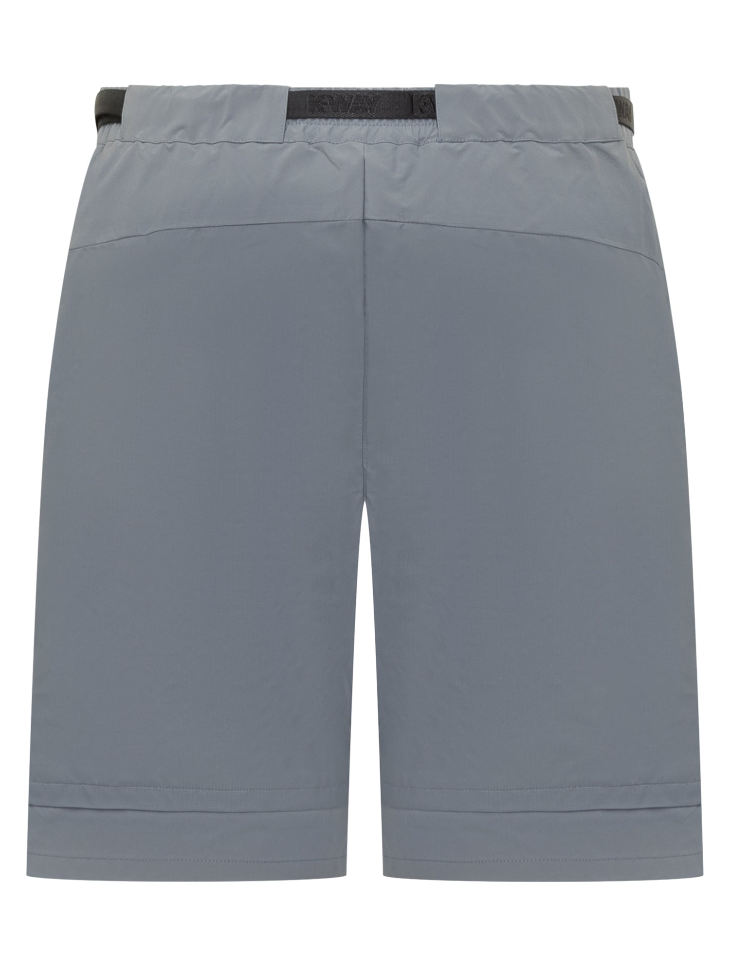 Chiusura con bottone e zip, Cintura con moschettone. Gamba ampia con tasche laterali e posteriori. Tasca interna portamonete. Asola per portachiavi e logo in silicone nero su fondo bianco.