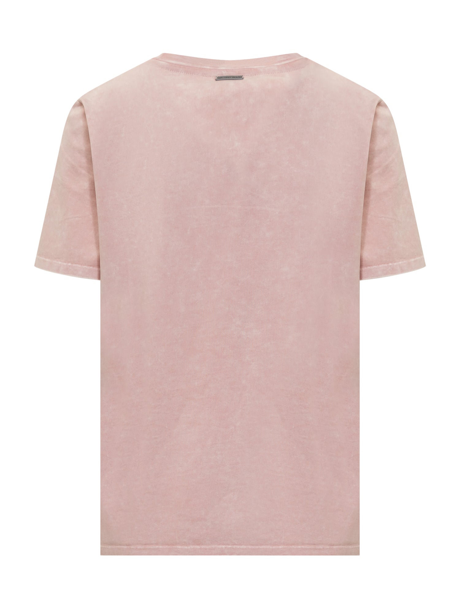 T-shirt rosa. Maniche corte. Girocollo. Logo con borchie.