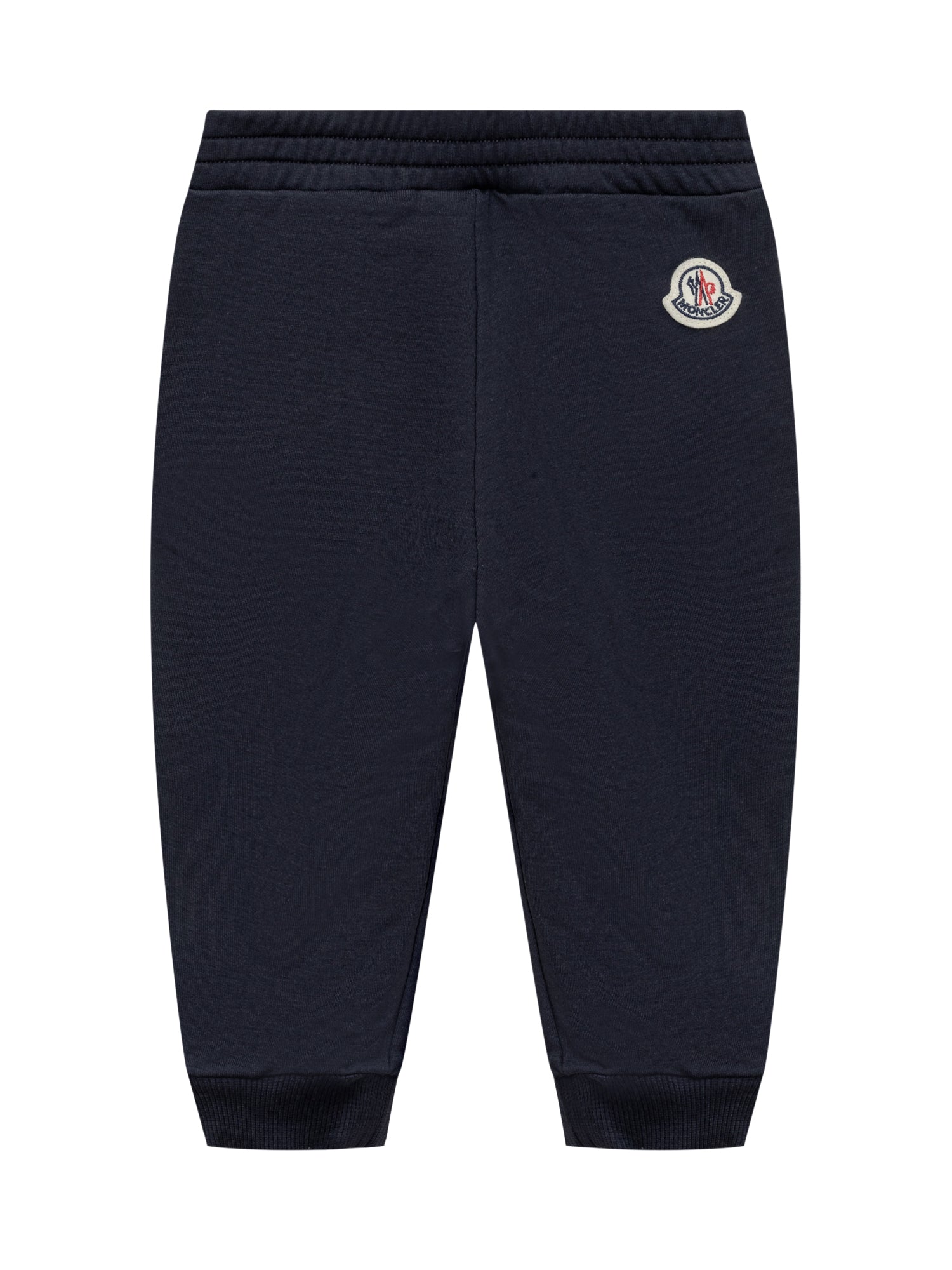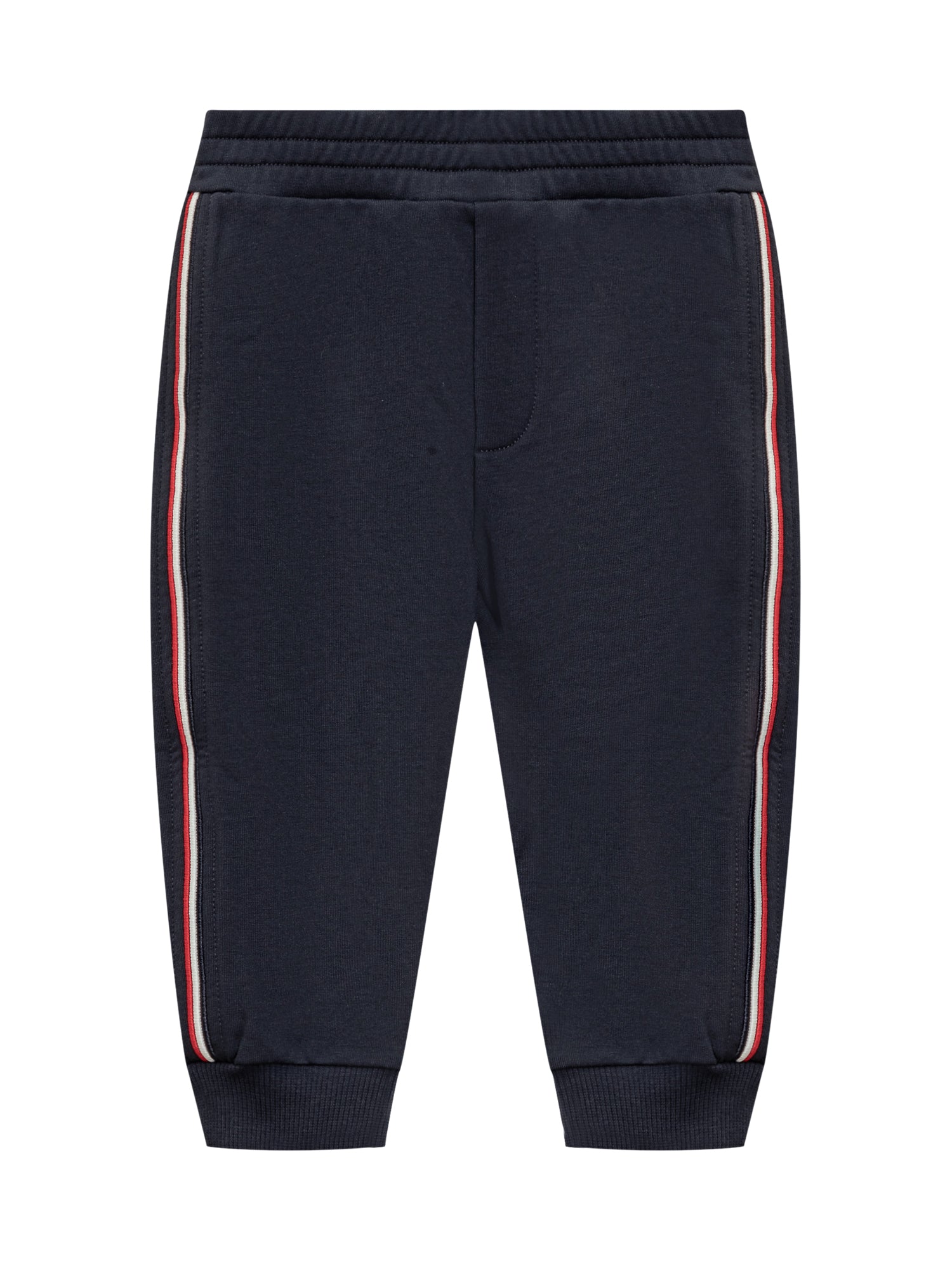 Pantalone lungo. Orli a costine. Due tasche laterali. Bande logate. Logo patch sul retro.