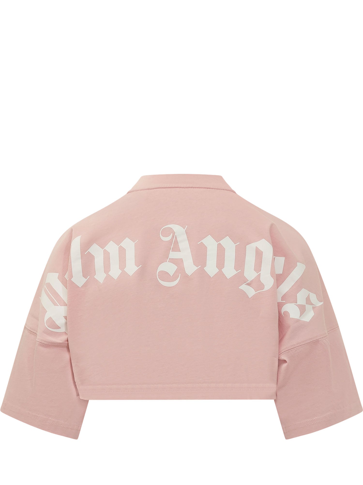 T-shirt crop con maniche corte e logo Palm Angels sul colletto, design minimal e vestibilità moderna