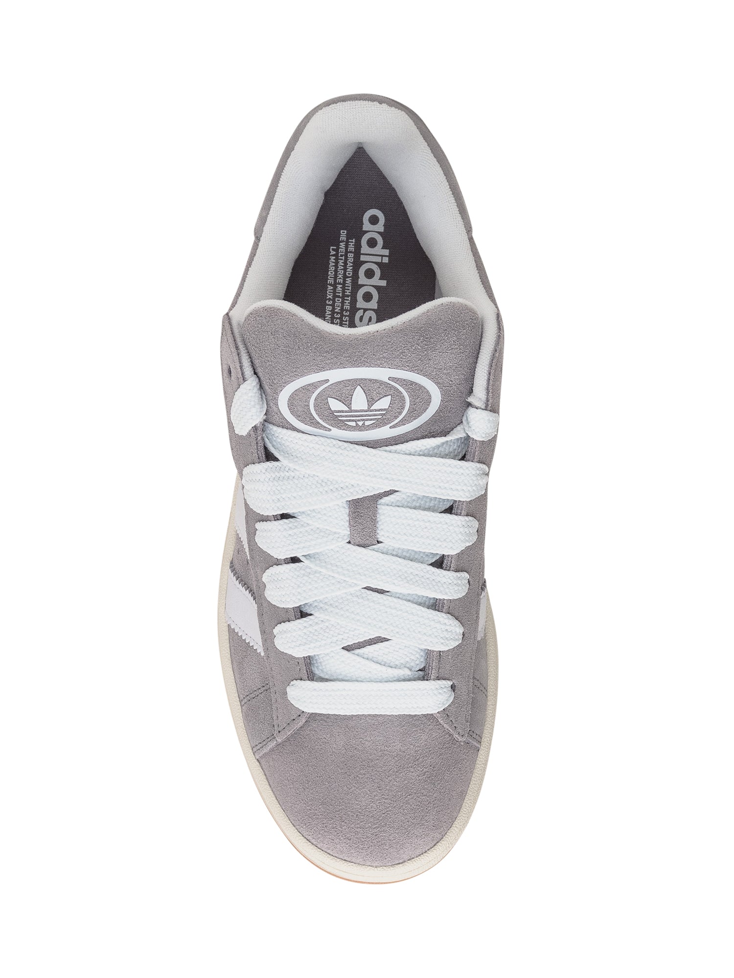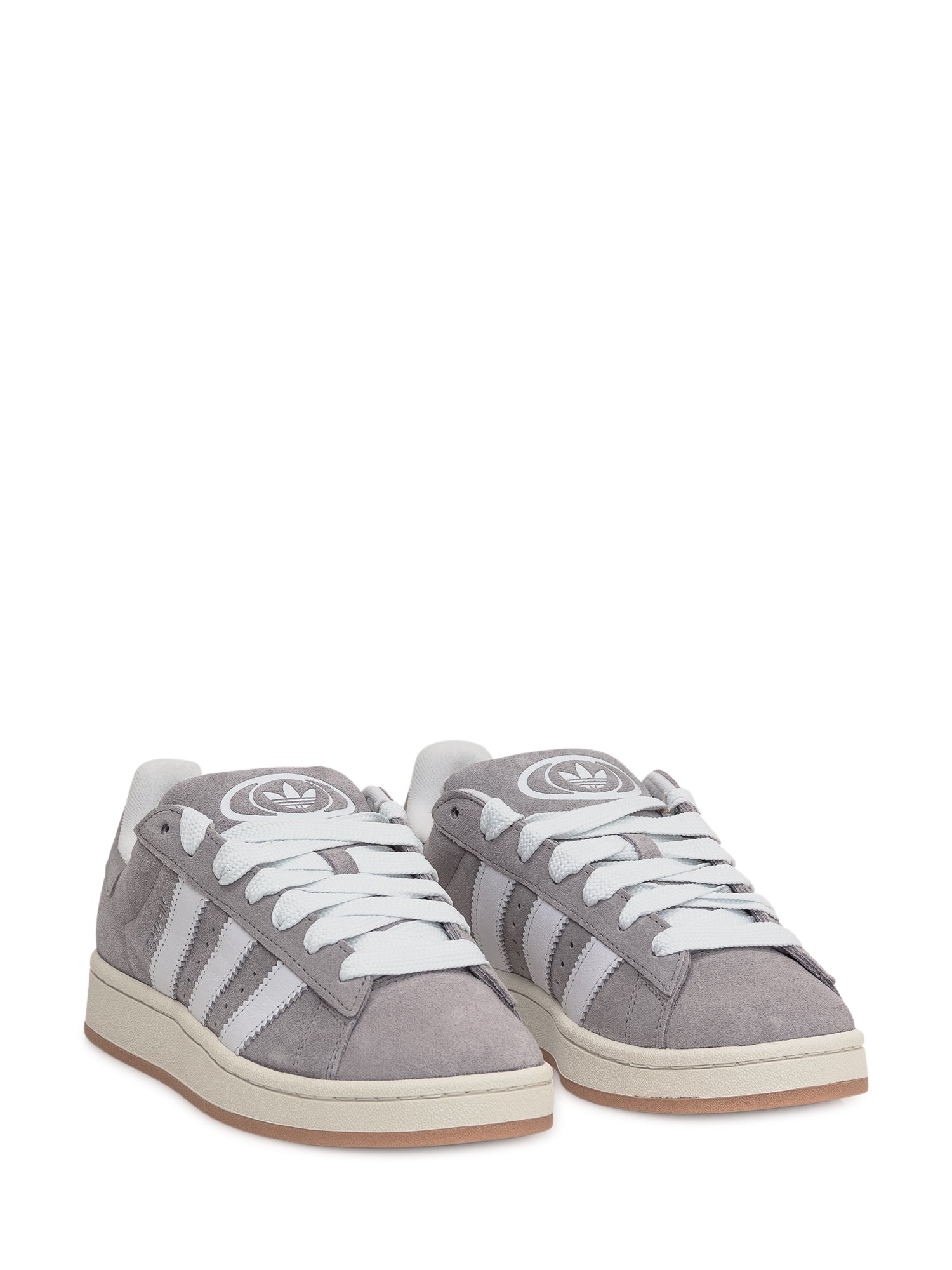 Sneaker grigia in pelle. Chiusura con lacci. Logo sulla linguetta e sul tallone. Tre strisce bianche sul lato.