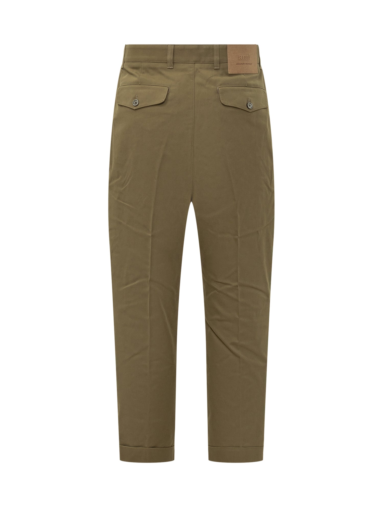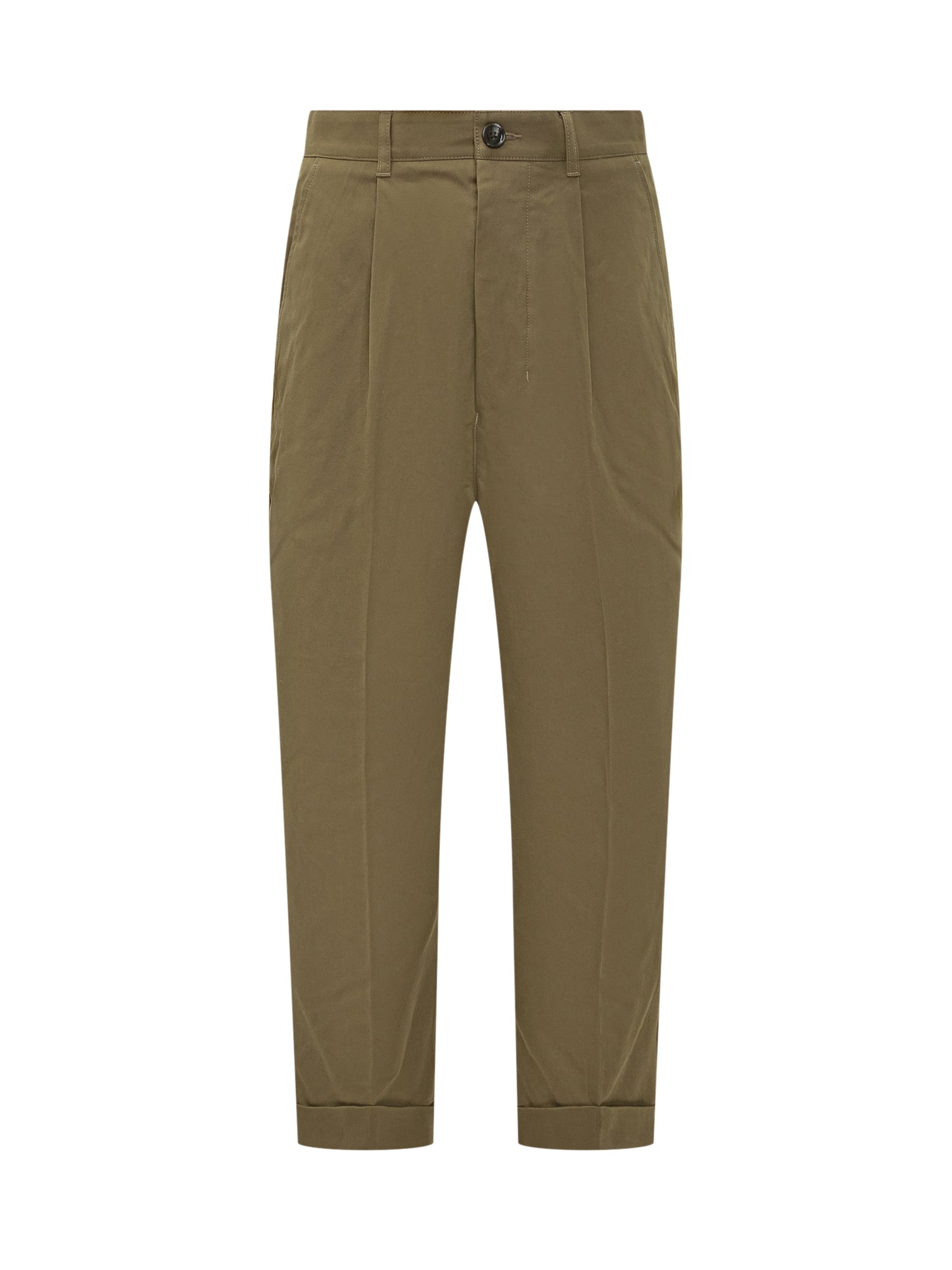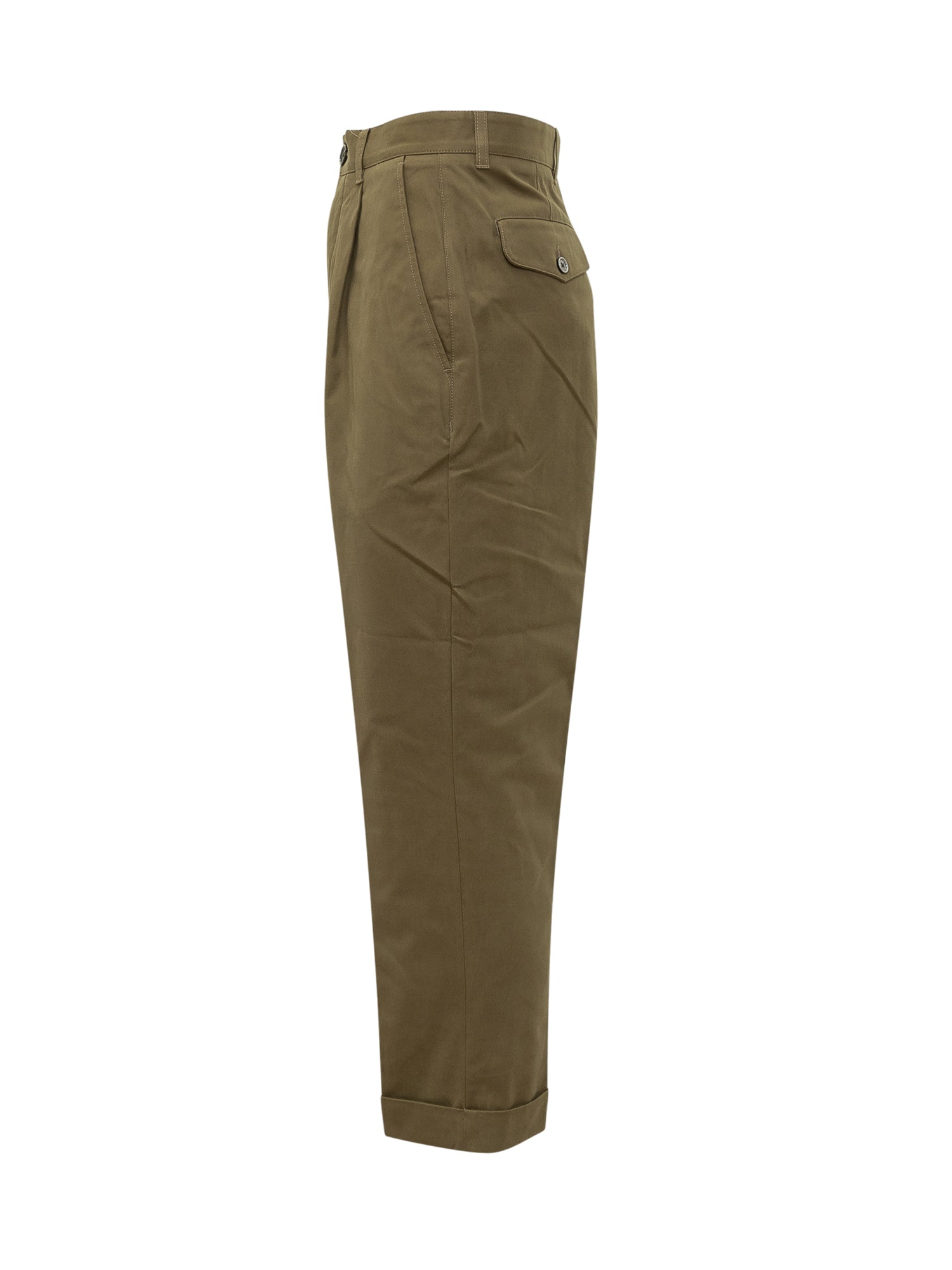 Pantaloni Incotex in cotone verde con pinces frontali, taglio dritto e risvolto al fondo.