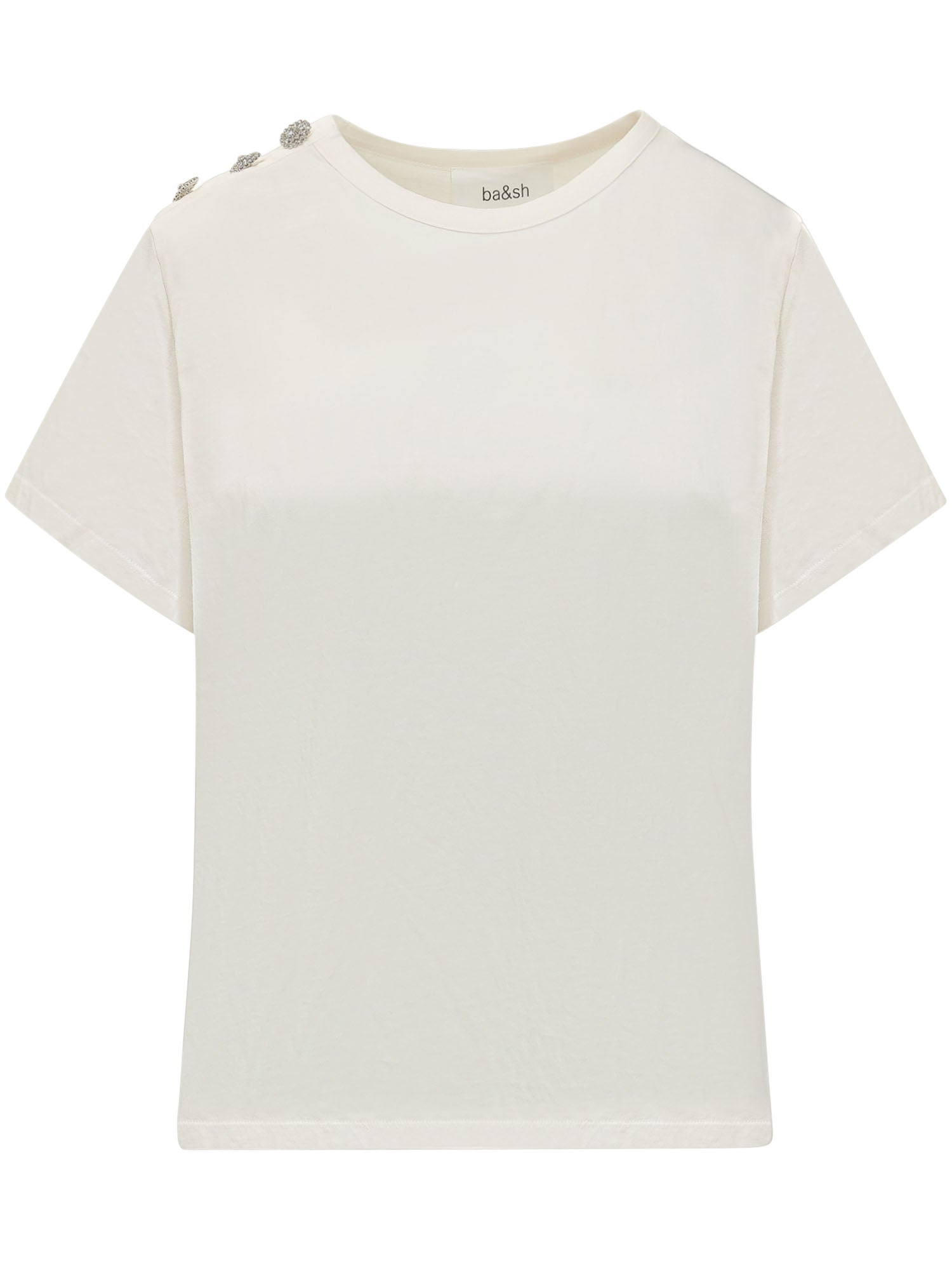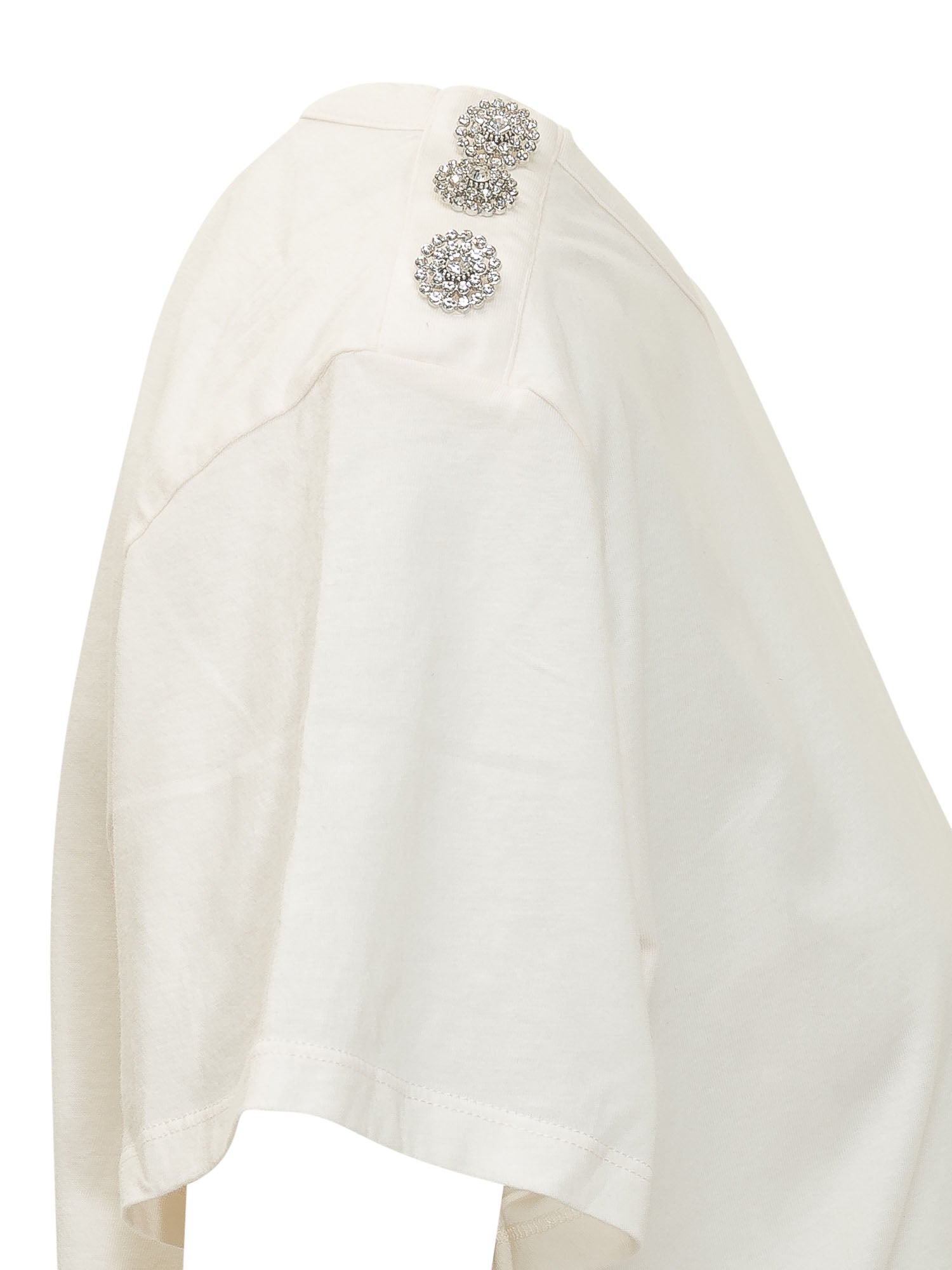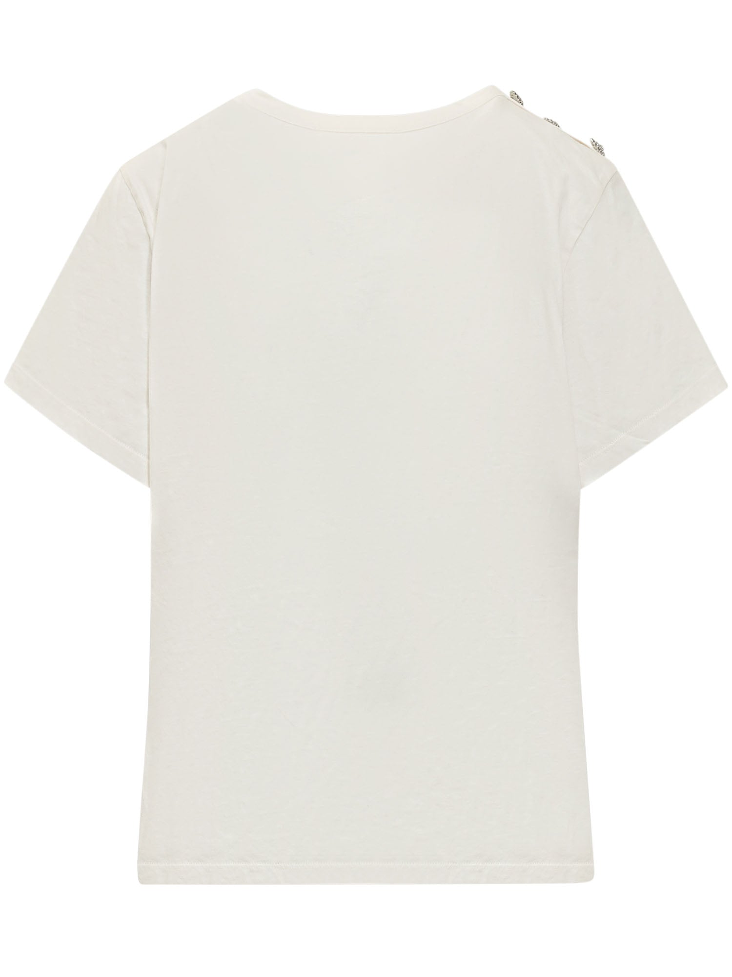 T-shirt a maniche corte con girocollo e applicazioni decorative sulle spalle, design minimal