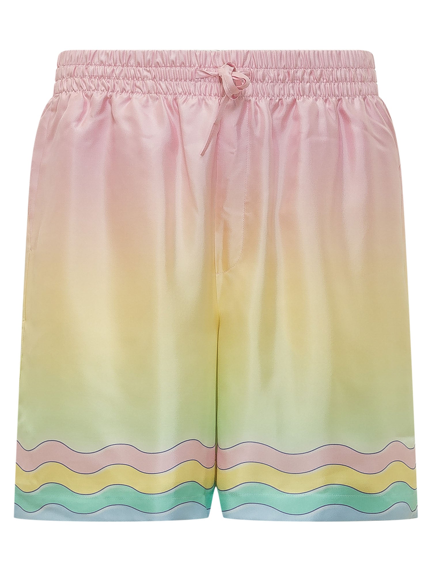 Shorts da mare con vita elasticizzata e coulisse, stampa sfumata con motivo ondulato sul fondo.