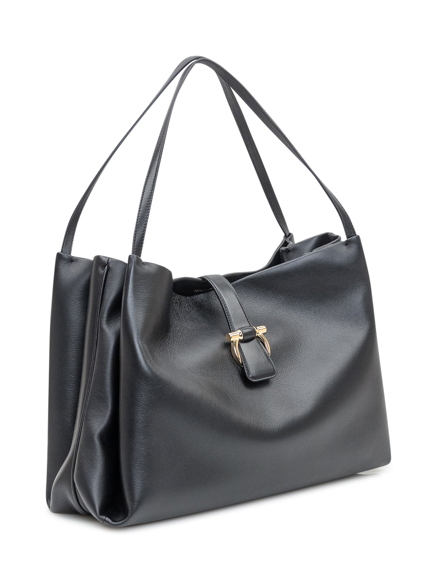 Borsa tote in pelle dalla linea morbida con manico unico e pattina con dettaglio metallico.Dimensioni: 39x27x10