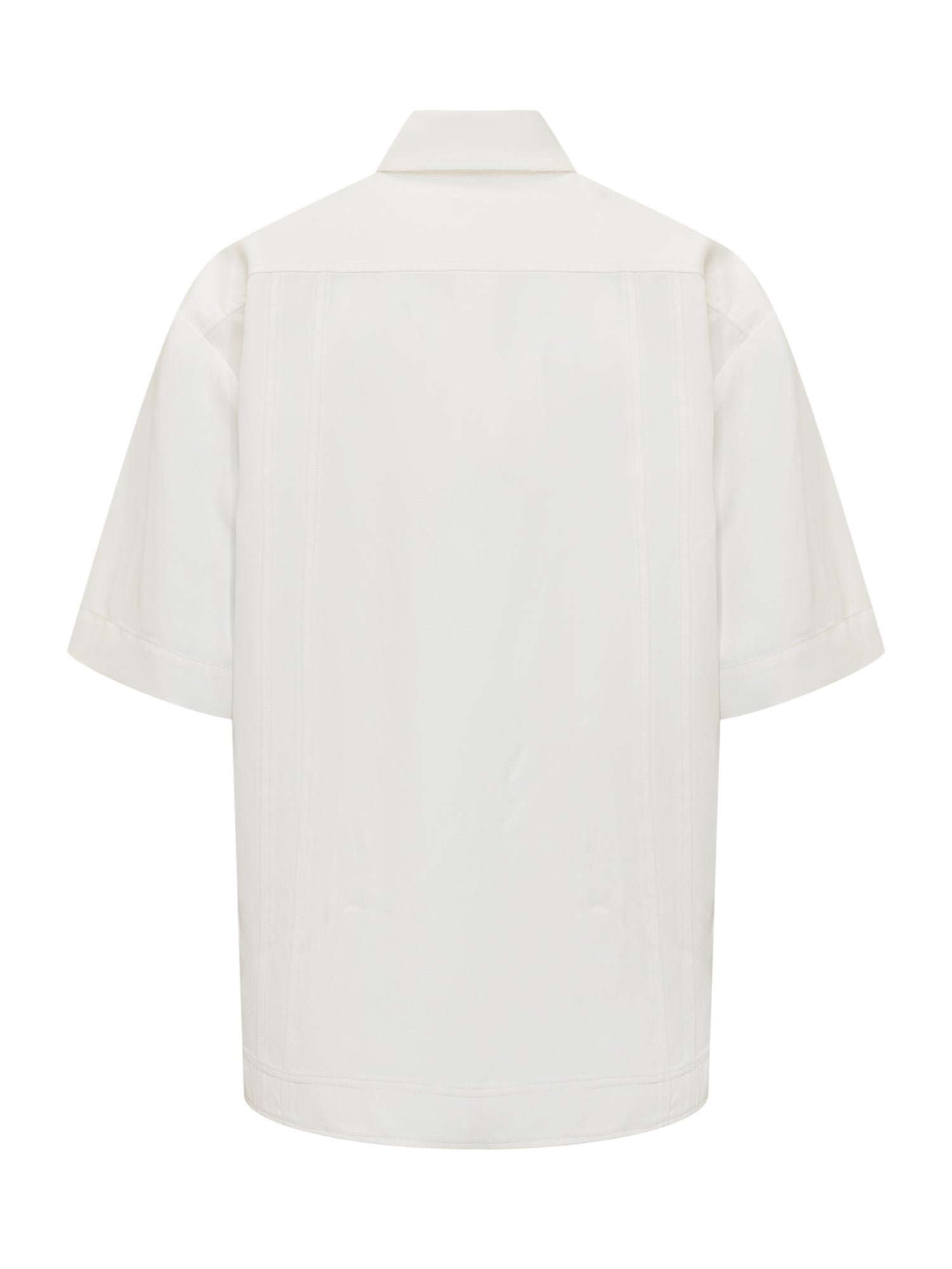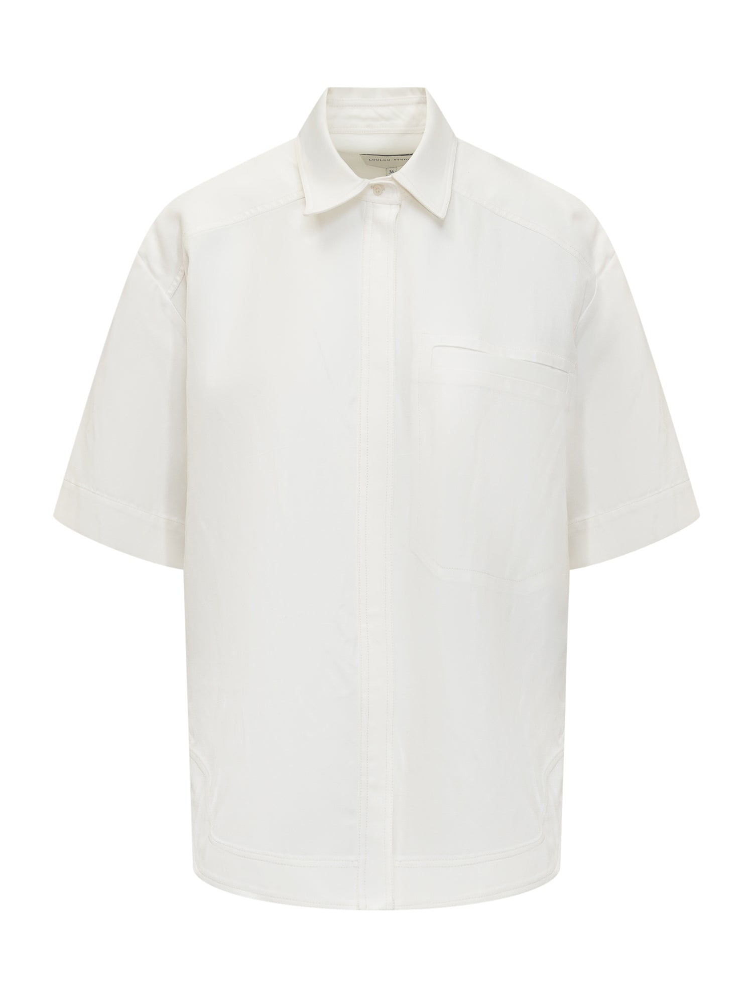 Maniche corte. Colletto a punta. Chiusura con bottoni.