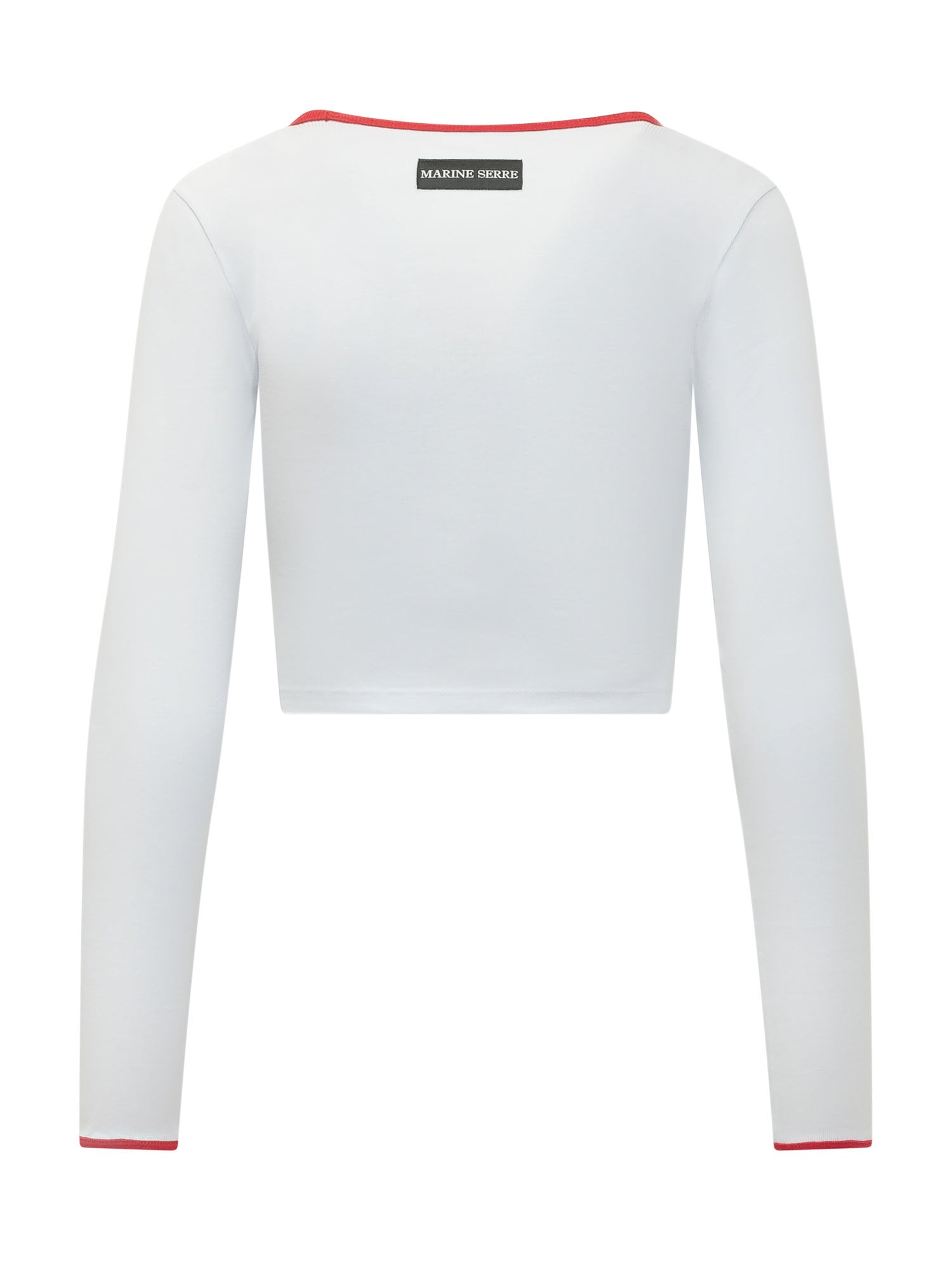 T-shirt a maniche lunghe con scollo tondo e lunghezza corta. Design aderente con piccolo logo ricamato sul petto. Linea pulita ideale per look contemporanei e abbinamenti versatili.