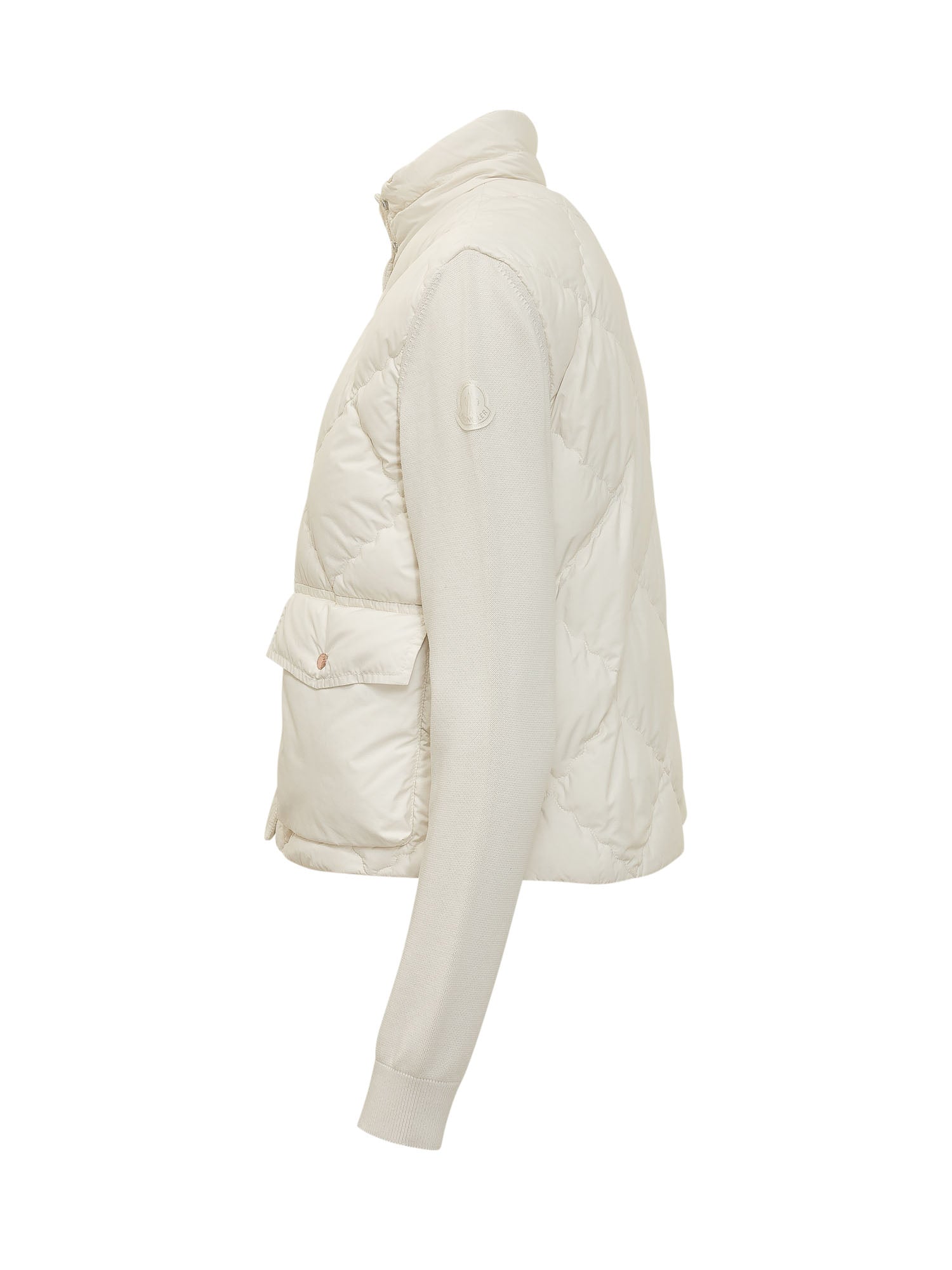 Cardigan imbottito con collo alto e chiusura frontale con bottoni a pressione, tasche con patta applicate e maniche in maglia, struttura trapuntata con motivo geometrico