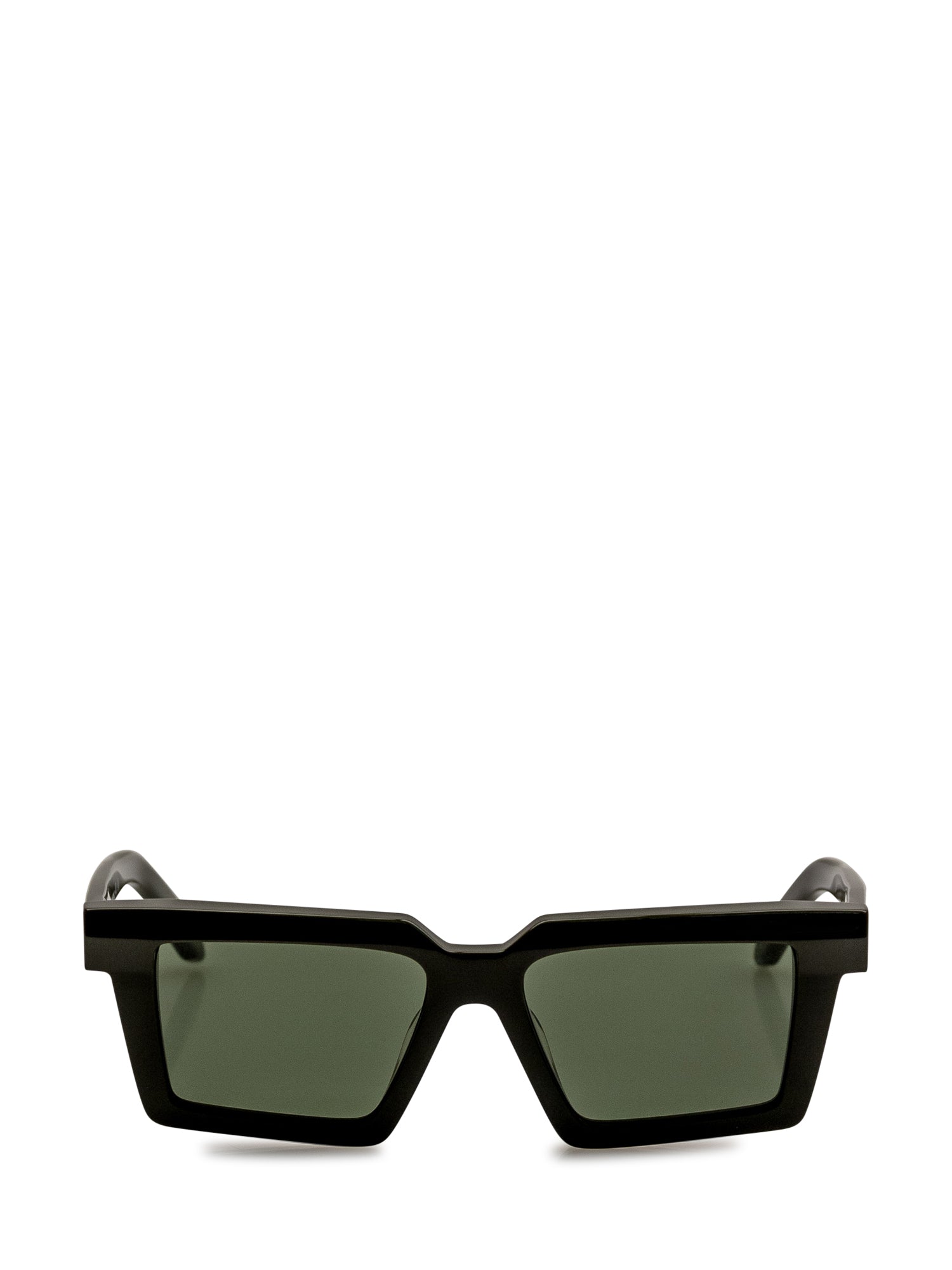 Occhiali neri con logo Off. Lenti squadrate verdi.