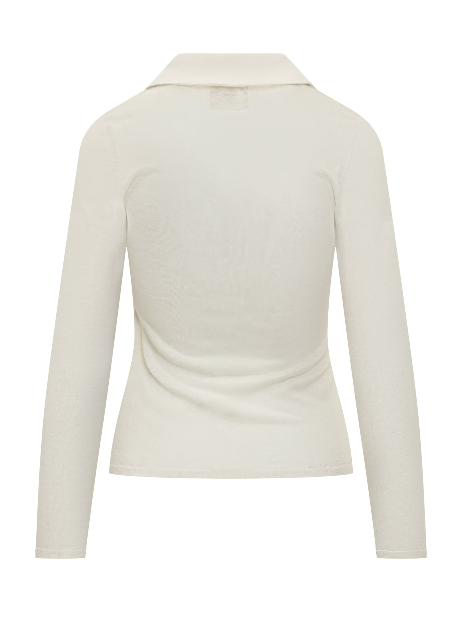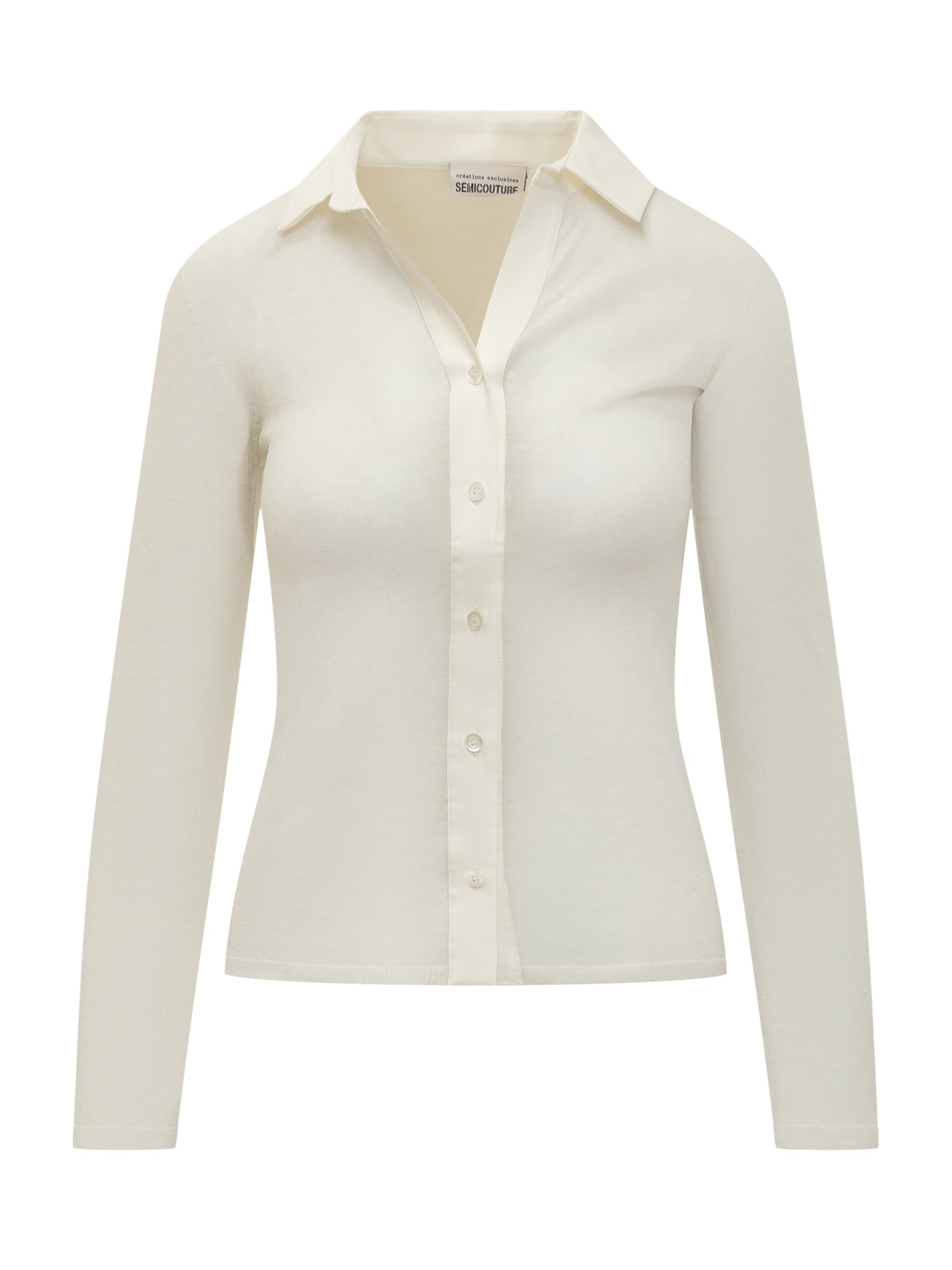 Cardigan Semicouture in maglia leggera color panna con colletto a camicia e bottoni frontali.
