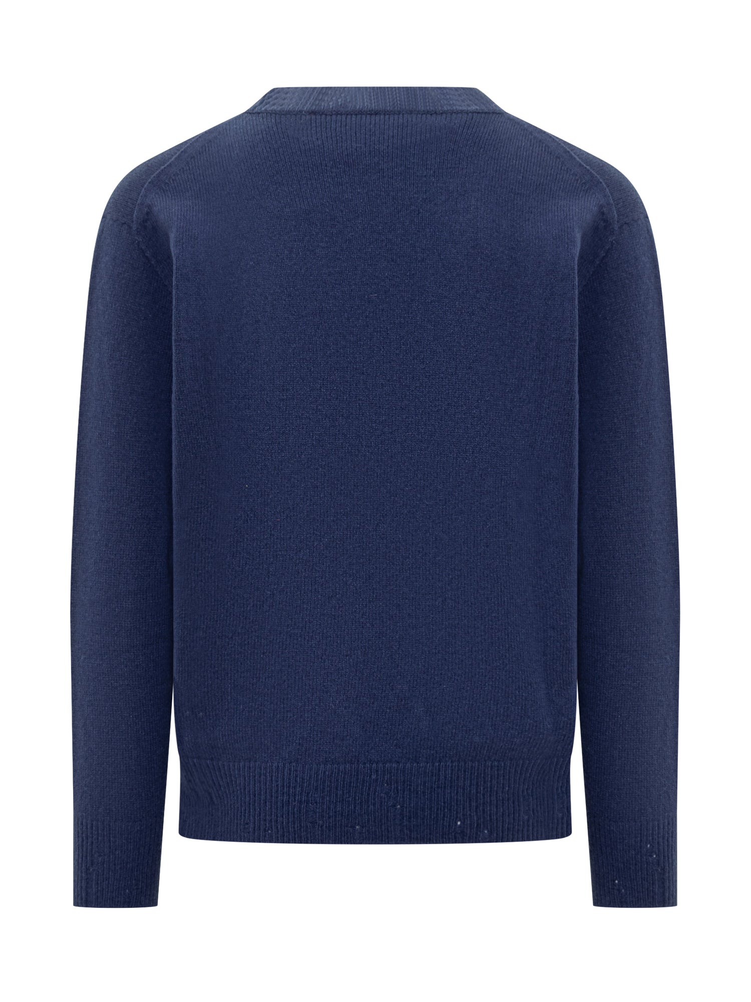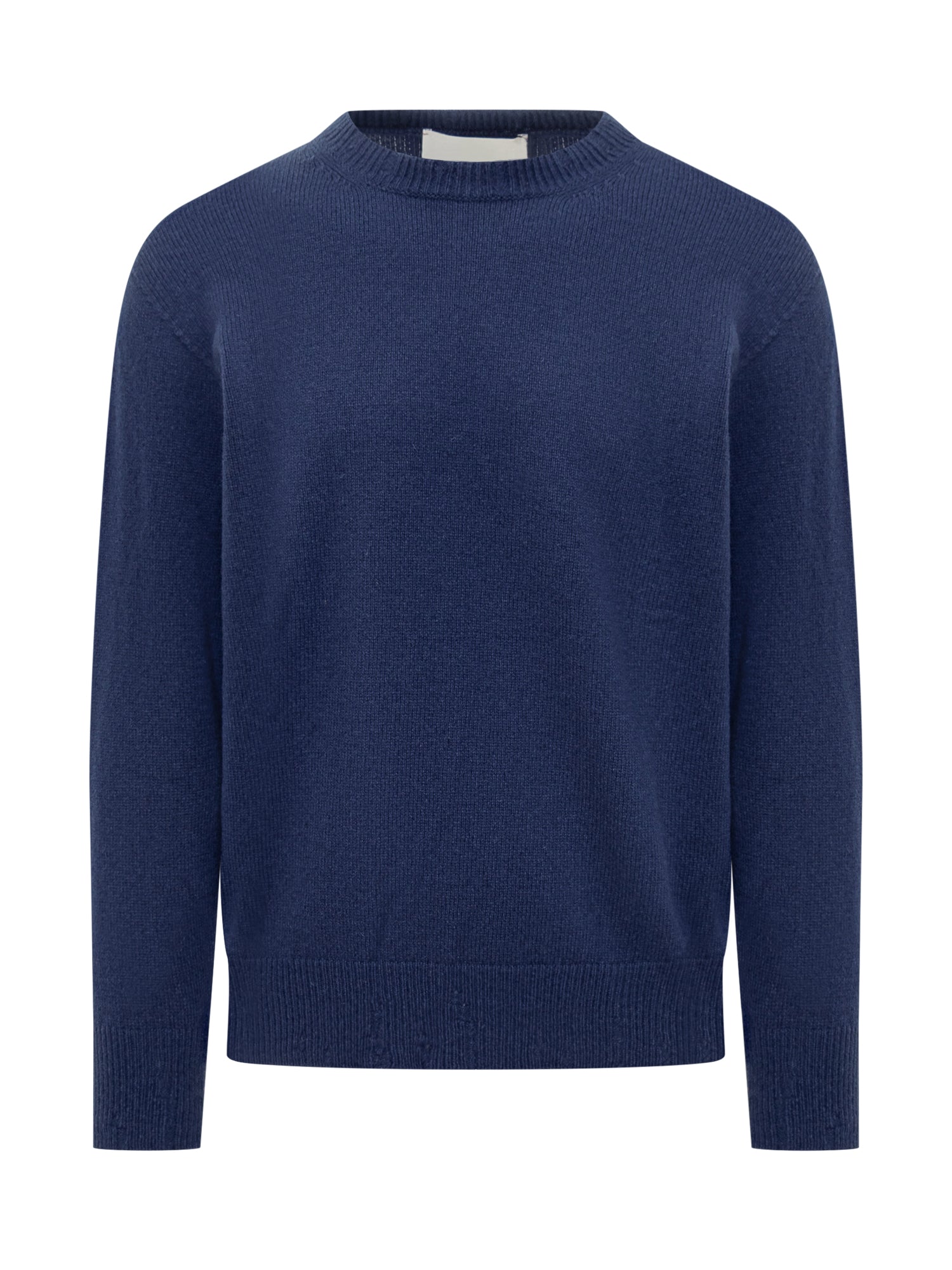 Maglione Amaranto blu in lana con scollo girocollo e linee pulite.