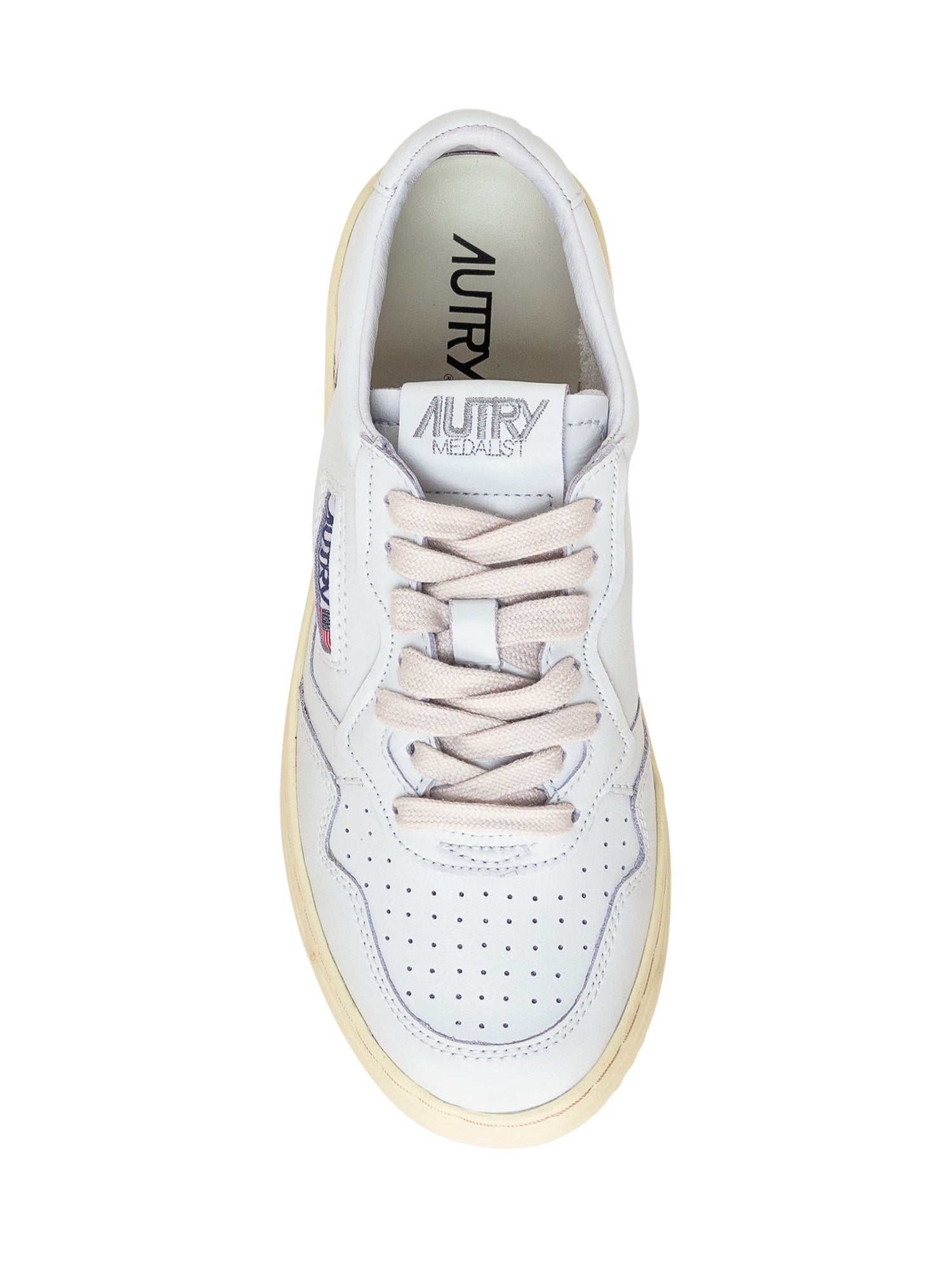 Sneaker bassa bianca in pelle. Punta traforata. Chiusura con lacci. Patch logo in pelle sulla linguetta. Tallone con logo. Logo sul lato.
