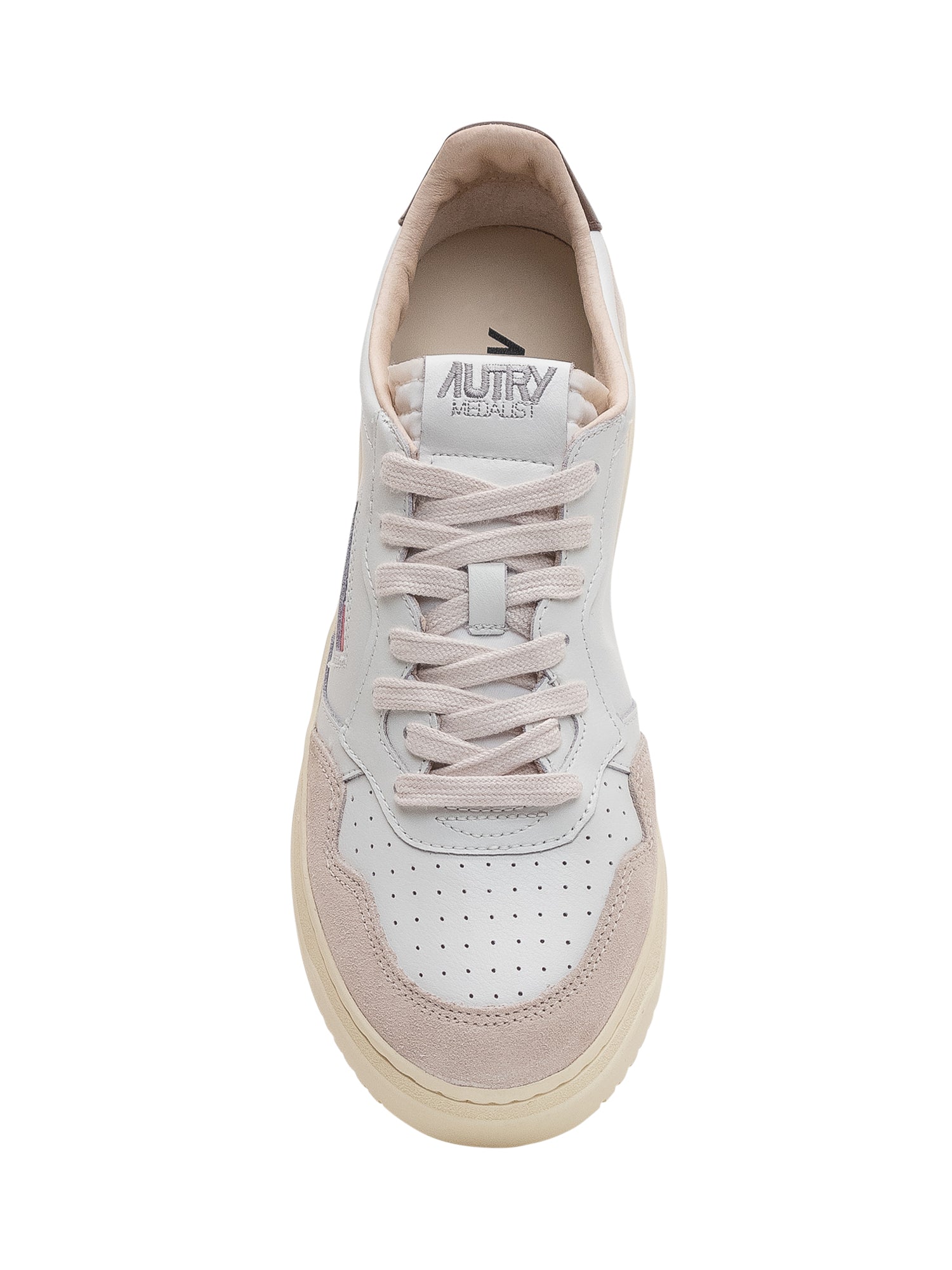 Sneakers basse con tomaia in pelle e inserti scamosciati.