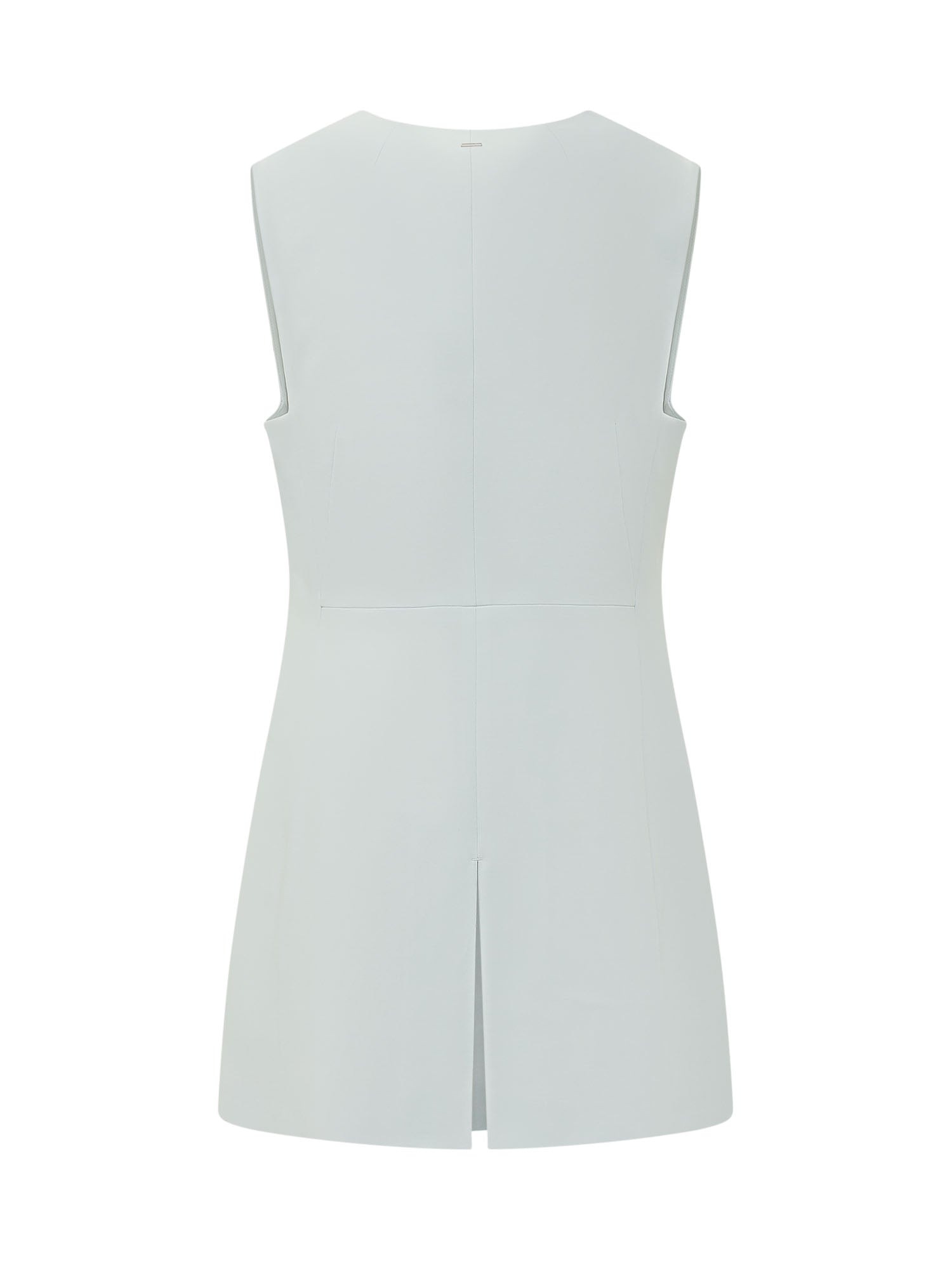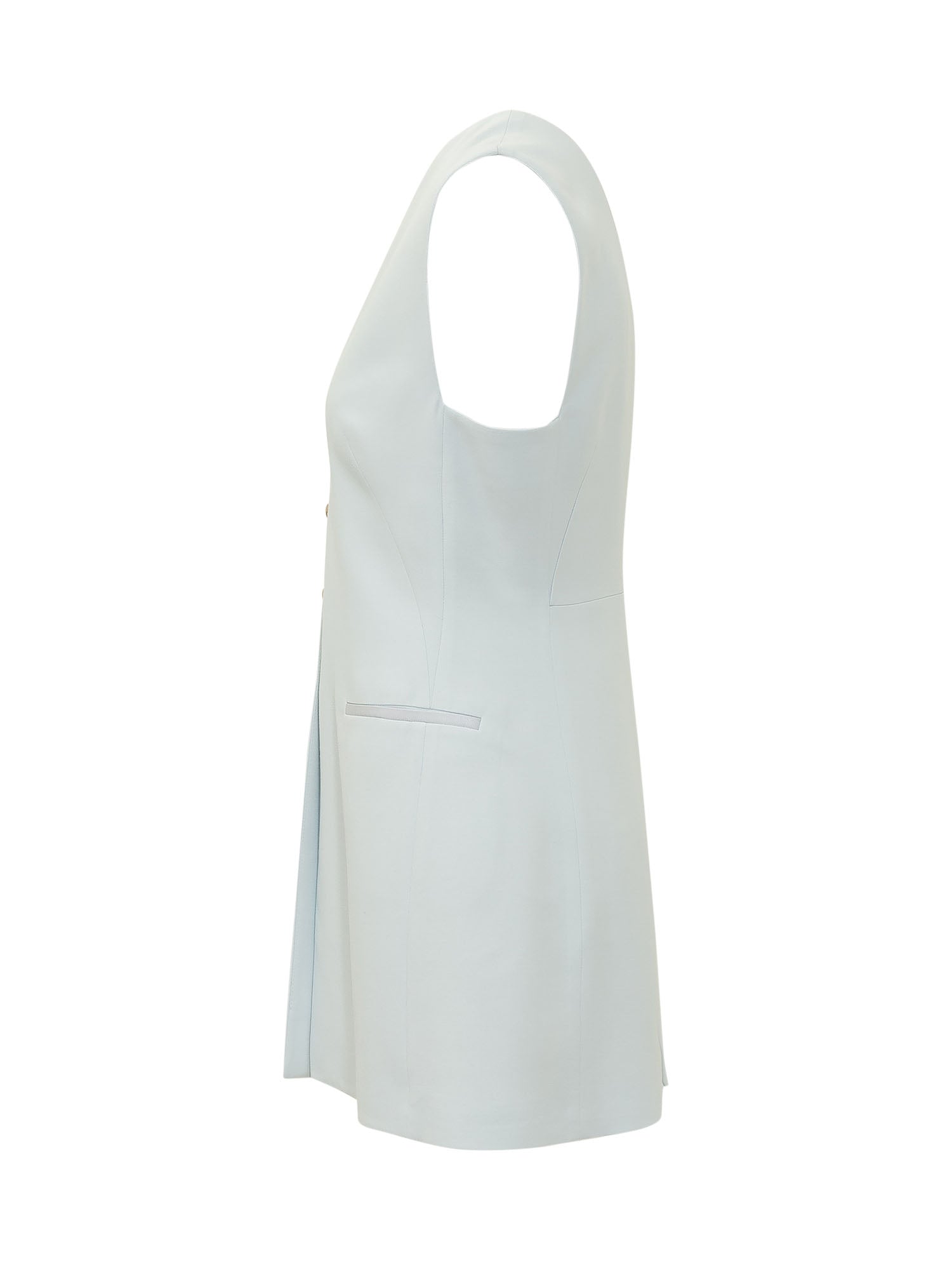 Gilet senza maniche con scollo a V e chiusura frontale con bottoni, caratterizzato da tasche frontali.