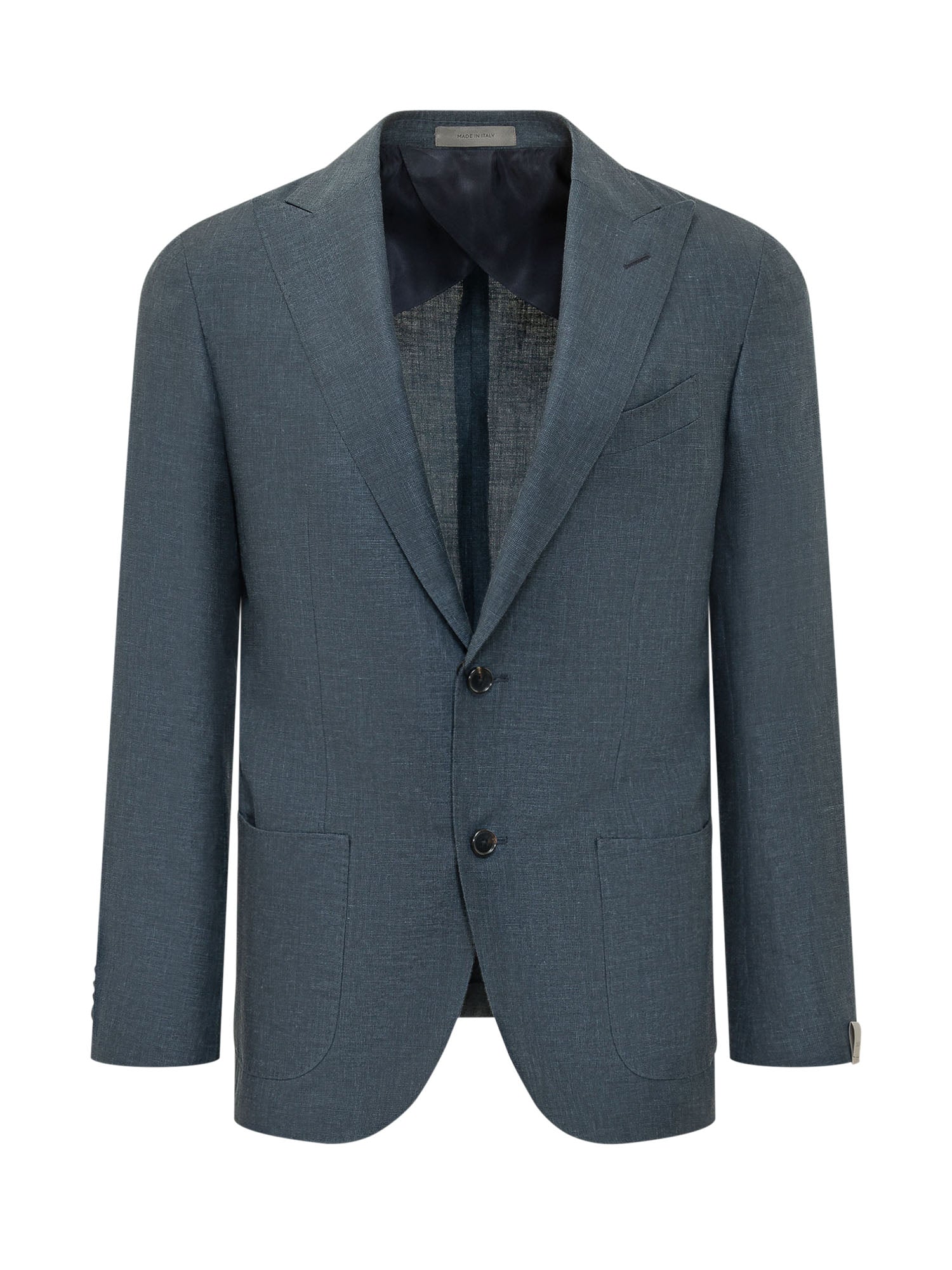 Esterno: 45% lana vergine, 45% lino, 10% seta Fodera: 100% cupro