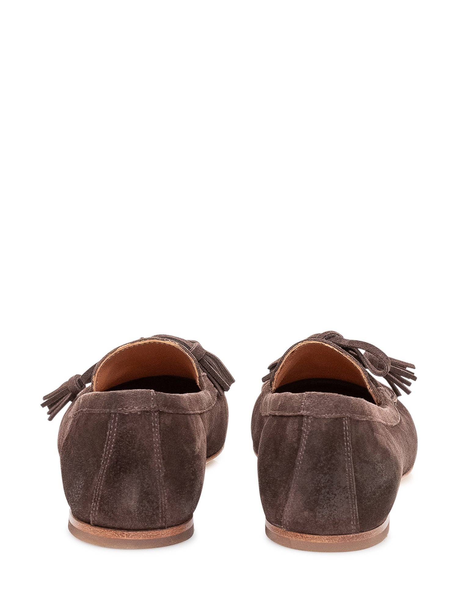 Mocassini con punta arrotondata e nappine decorative sul davanti, design slip on con cuciture a vista e suola bassa