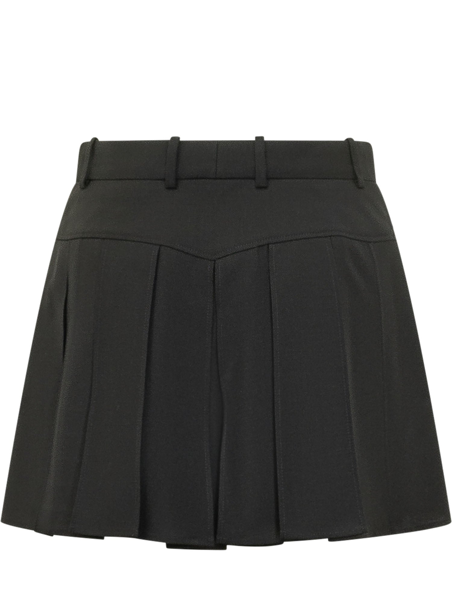 Shorts con vita alta e passanti, chiusura nascosta e pieghe sul retro che donano volume, linea pulita